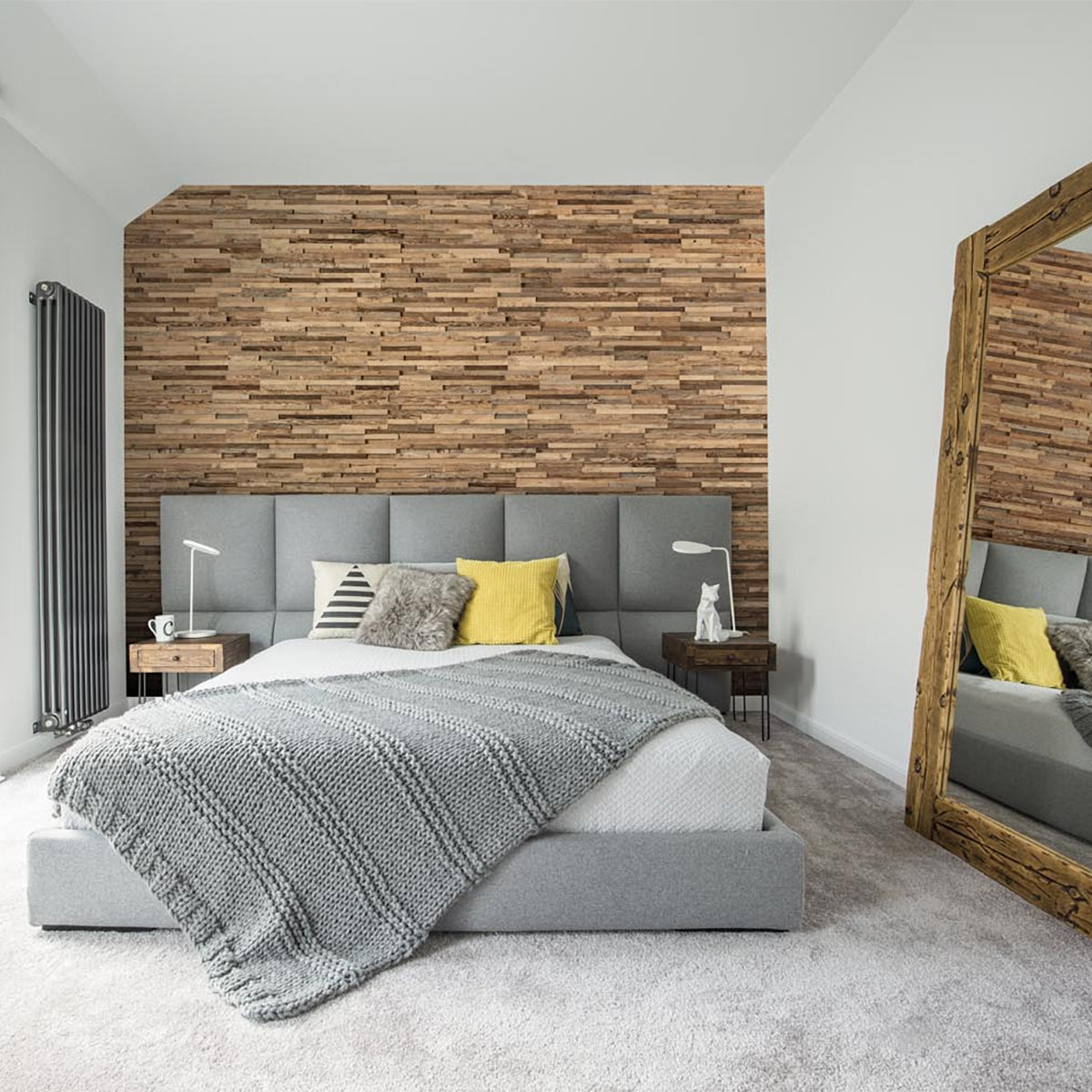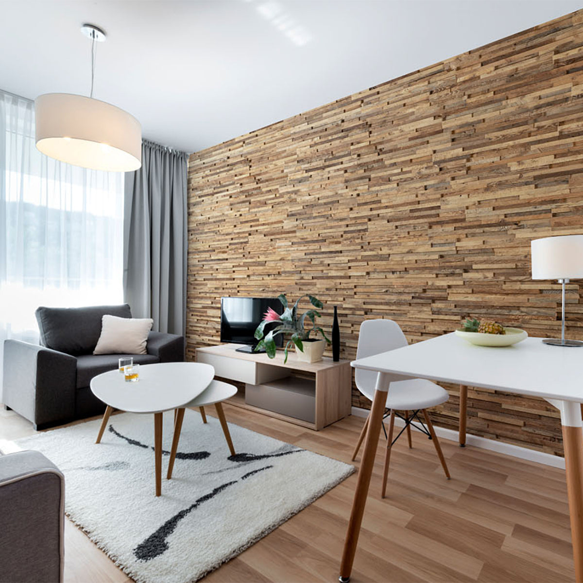 Стенните панели са чудесно решение за интериор, което може да се използва за вътрешни стени и тавани или за фасади на сгради. Помислете за добавяне на стенни лампи, за да подчертаете текстурата на дървото.