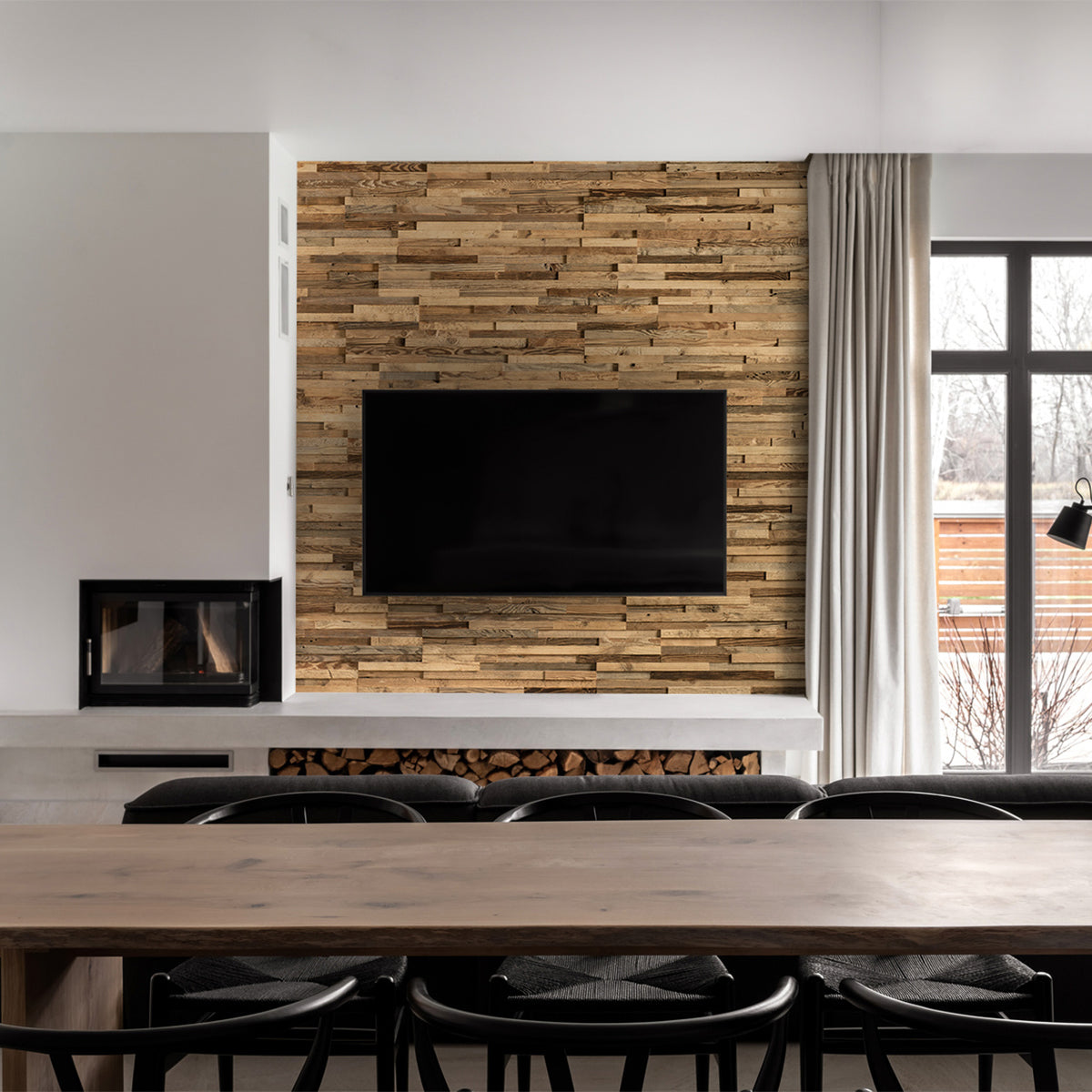 Стенен панел "A PRIORI" е изработен от регенерирана дървесина. Този материал обикновено идва от стари хамбари и мелници, където дъските са били под въздействието на вятър, дъжд и слънце в продължение на десетилетия. Внимателно обработени и почистени с най-голямо внимание към цвета и текстурата. След четкане с машини, получаваме уникална текстура и цвят, които не могат да бъдат създадени изкуствено. Матираната повърхност има приятен, топъл, кафеникав тон. В резултат на това те са чудесни за функционална стена за всеки интериорен дизайн.