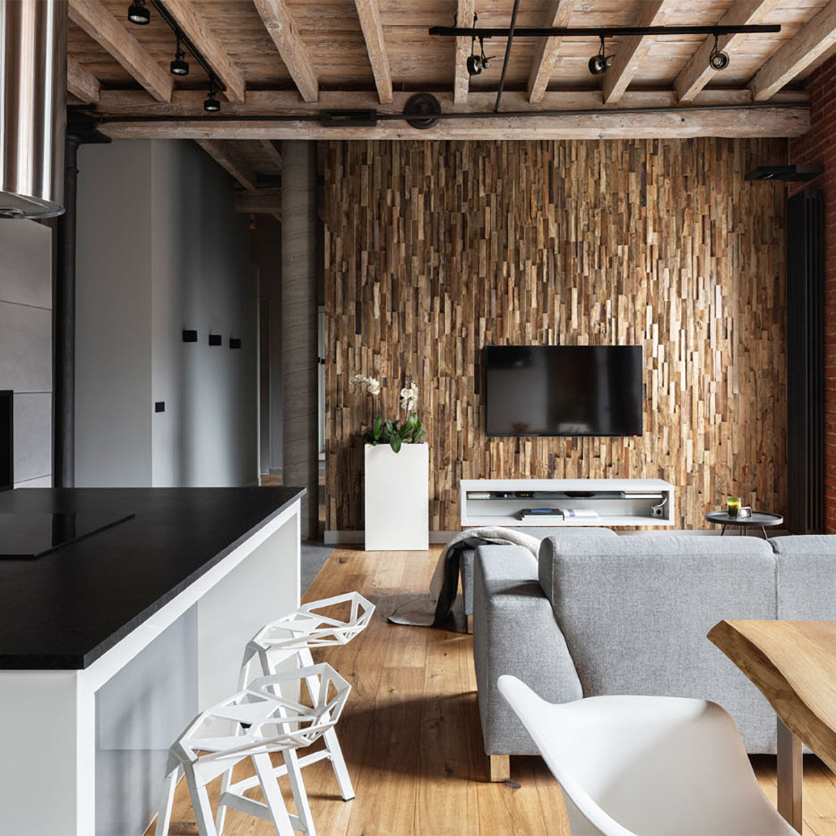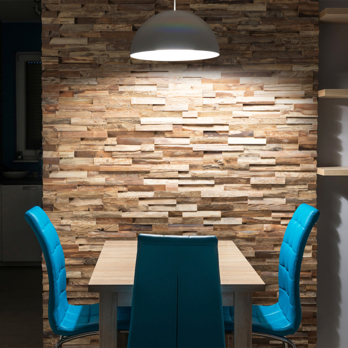 Стенен панел "ALIAS" е изработен от регенерирана дървесина. Този материал обикновено идва от стари хамбари и мелници, където дъските са били под въздействието на вятър, дъжд и слънце в продължение на десетилетия. Внимателно обработени и почистени с най-голямо внимание към цвета и текстурата. След четкане с машини, получаваме уникална текстура и цвят, които не могат да бъдат създадени изкуствено. Матираната повърхност има приятен, топъл, кафеникав тон. В резултат на това те са чудесни за функционална стена за всеки интериорен дизайн.