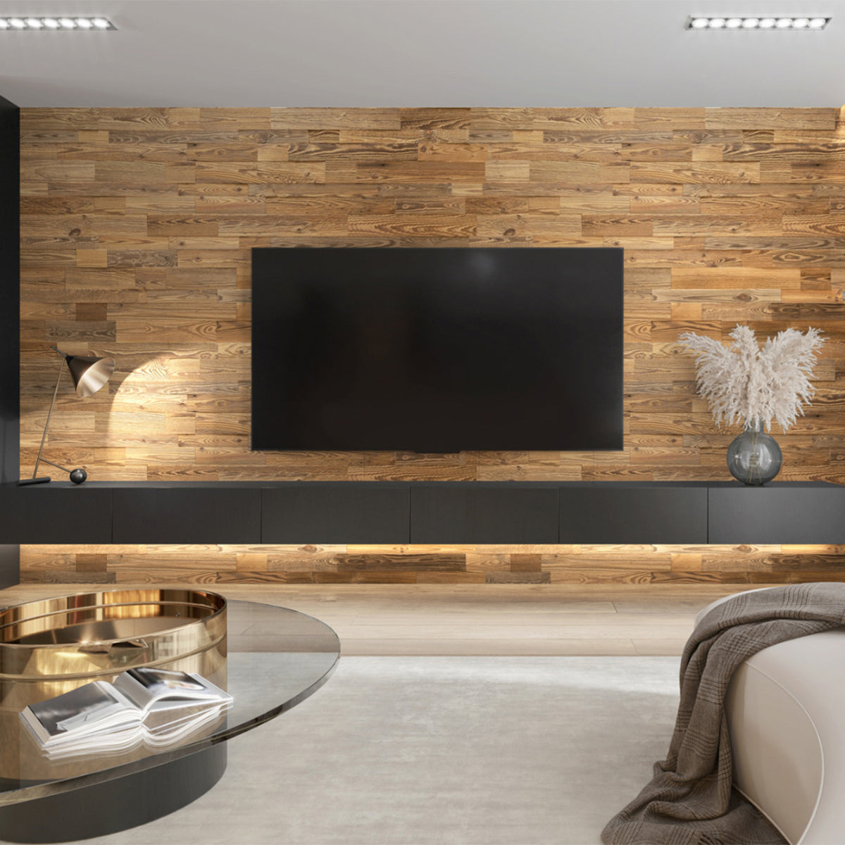 Помислете за добавяне на стенни лампи или светодиодни ленти, за да подчертаете текстурата на стенния панел. Естествената светлина от прозорците също е чудесен начин да я разширите.
