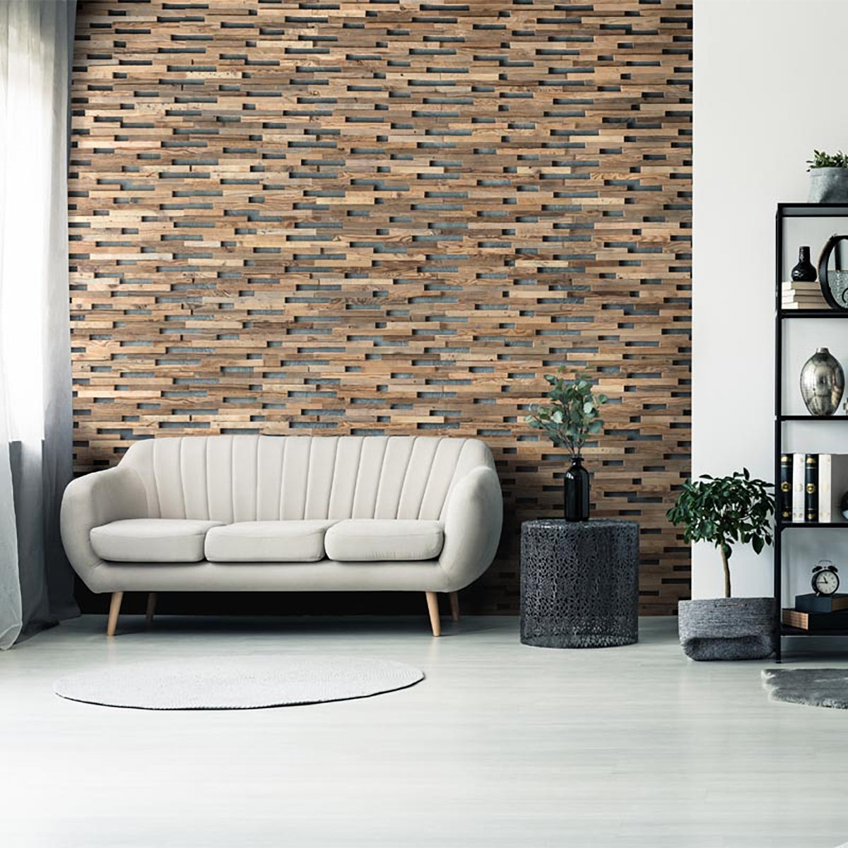 Стенно пано "EXPO" е изработено от регенерирана дървесина. Този материал обикновено идва от стари хамбари и мелници, където дъските са били под въздействието на вятър, дъжд и слънце в продължение на десетилетия. Внимателно обработени и почистени с най-голямо внимание към цвета и текстурата. След четкане с машини, получаваме уникална текстура и цвят, които не могат да бъдат създадени изкуствено. Матираната повърхност има приятен, топъл, кафеникав тон. В резултат на това те са чудесни за функционална стена за всеки интериорен дизайн.