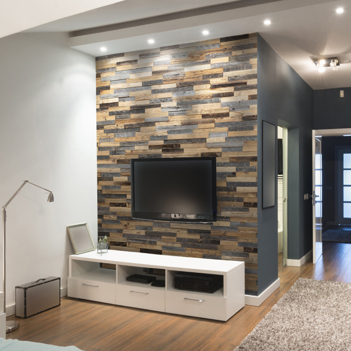Помислете за добавяне на стенни лампи или светодиодни ленти, за да подчертаете текстурата на стенния панел. Естествената светлина от прозорците също е чудесен начин да я разширите.