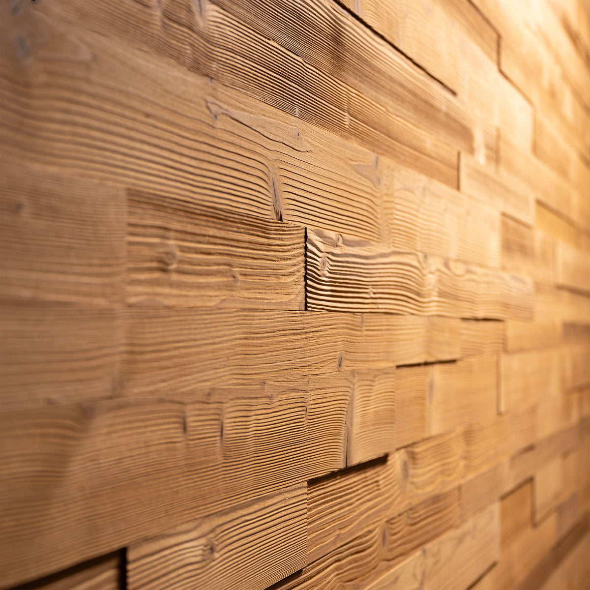 Стенен панел "THERMO" е изработен от термодървесина, която е нарязана на две дебелини за създаване на 3D ефект. Този дървен материал е термично обработена дървесина, произведена по напълно естествени методи – топлина и пара. Термичната обработка подобрява свойствата на дървото, отваряйки го за широк спектър от приложения. Изработен от висококачествен устойчив бор и смърч, без никакви вредни химикали.