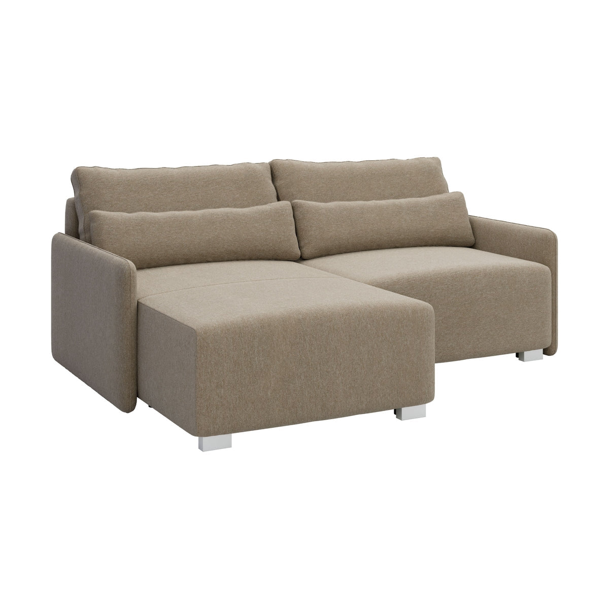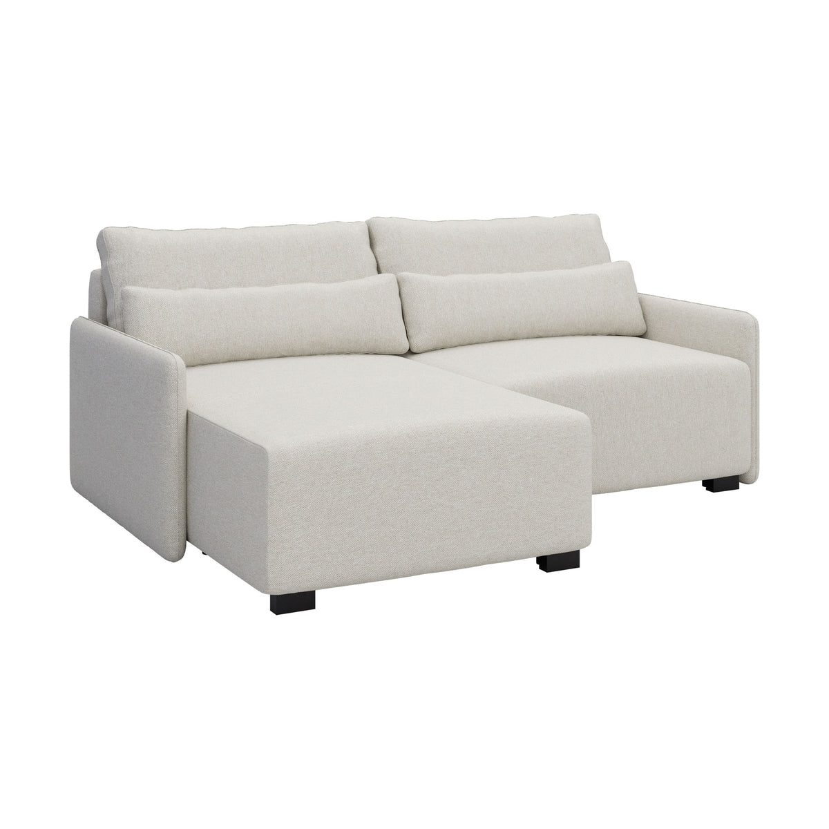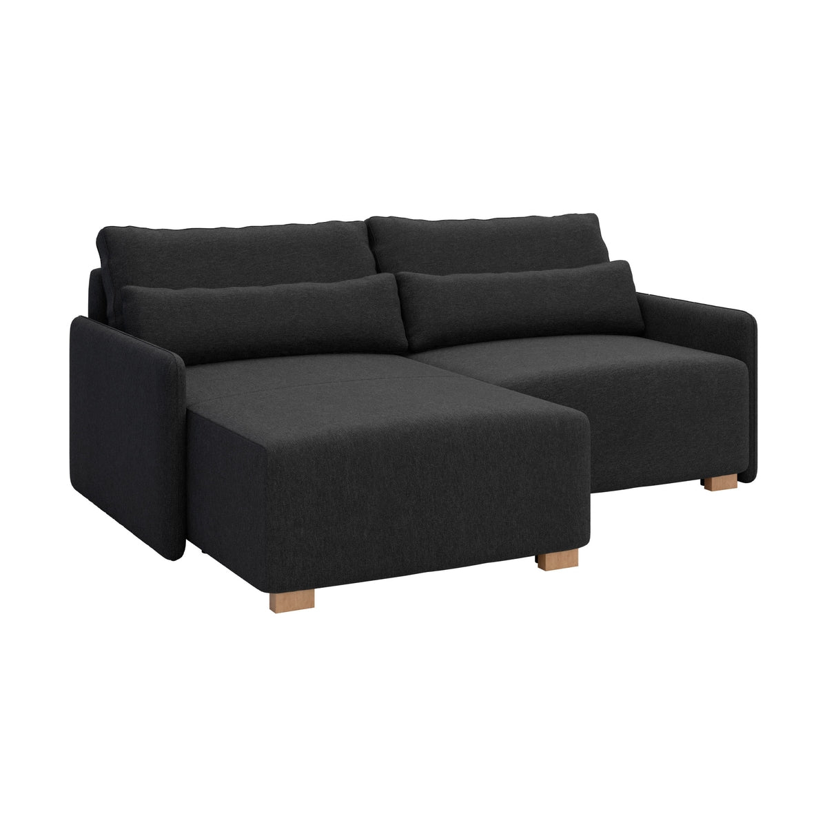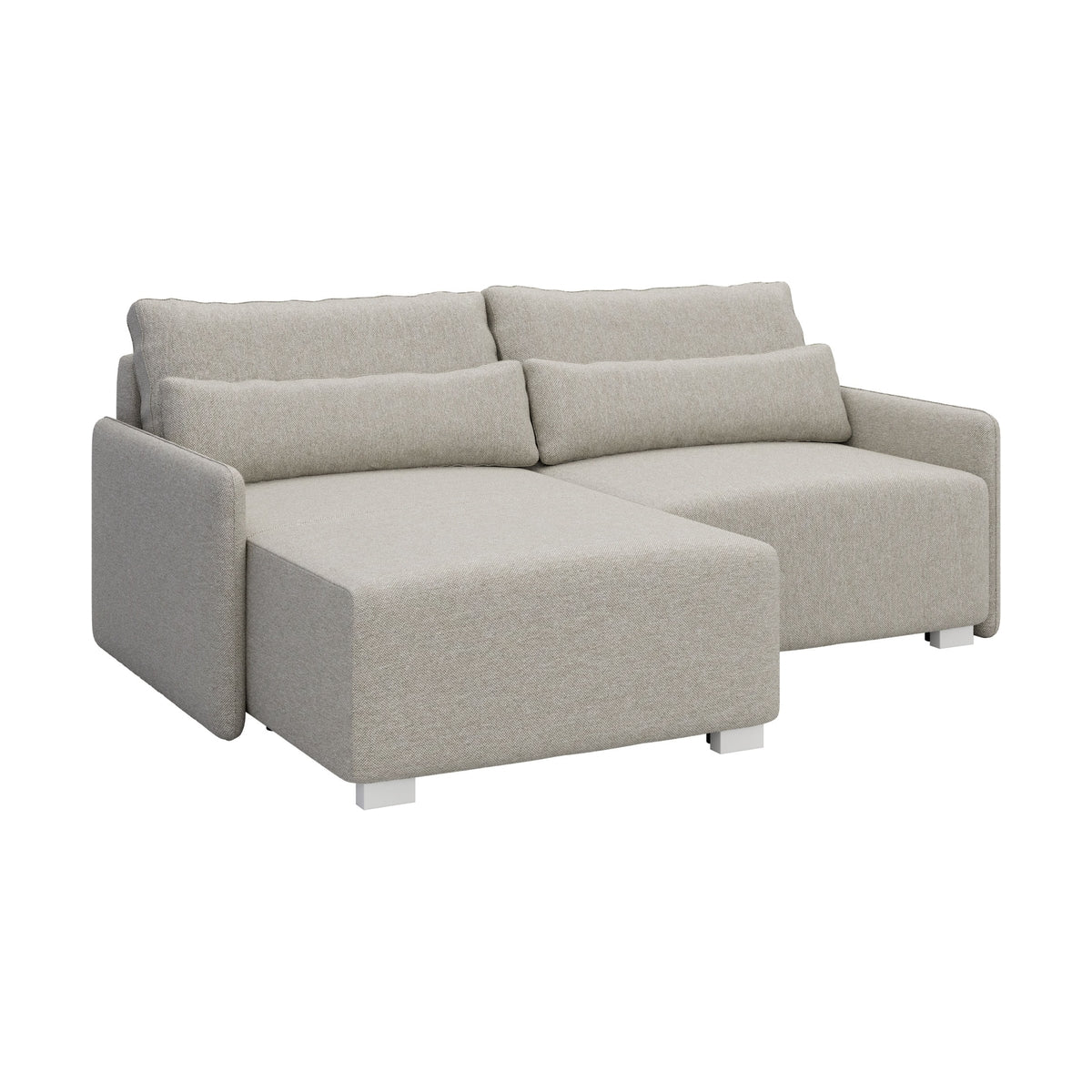 Ъглов диван JASPER е с универсален ъгъл, може да решите от коя страна да е лежанката при сглобяване. Диванът разполага с асистиран механизъм за разтягане, което прави подготвянето на място за сън изключително лесно. Раклата за спално бельо Ви позволява да скриете завивки, възглавници и други вещи и увеличава функционалността на дивана.
