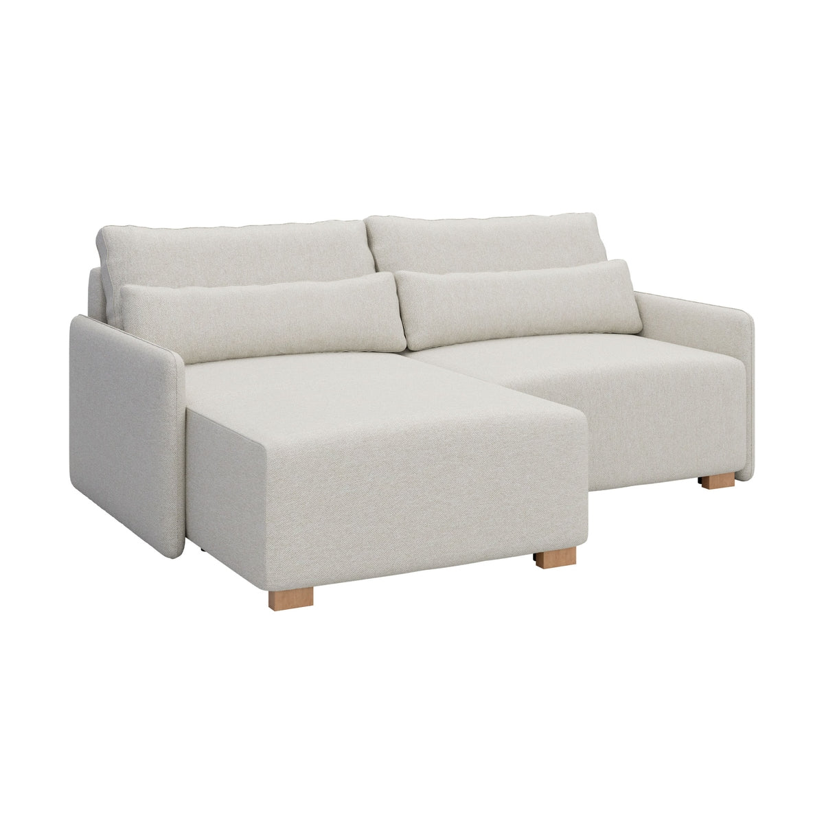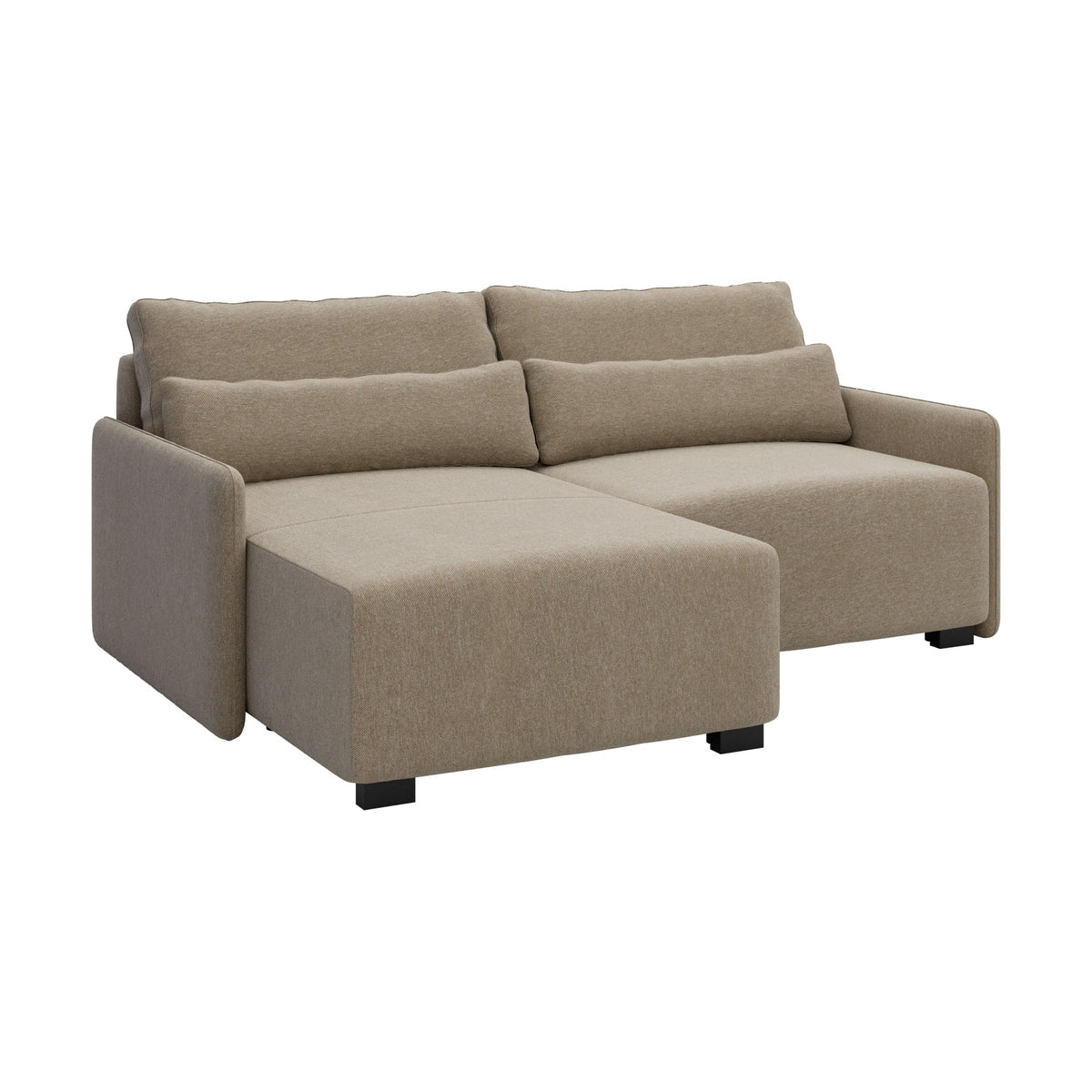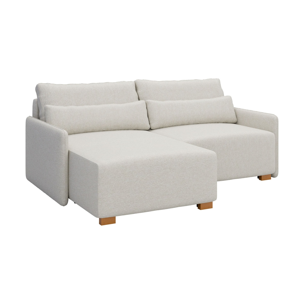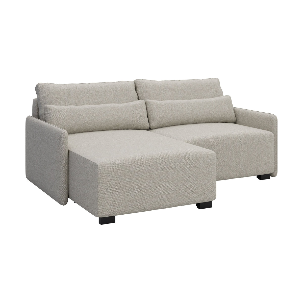 Ъглов диван JASPER е с универсален ъгъл, може да решите от коя страна да е лежанката при сглобяване. Диванът разполага с асистиран механизъм за разтягане, което прави подготвянето на място за сън изключително лесно. Раклата за спално бельо Ви позволява да скриете завивки, възглавници и други вещи и увеличава функционалността на дивана.