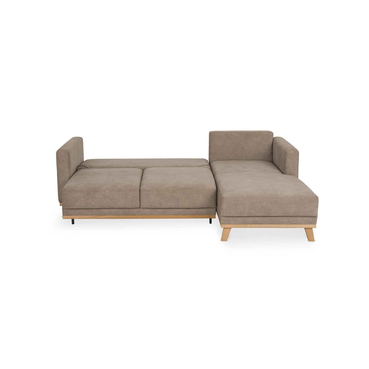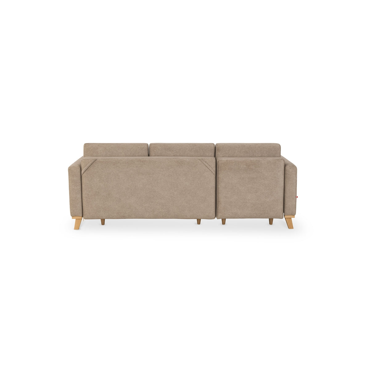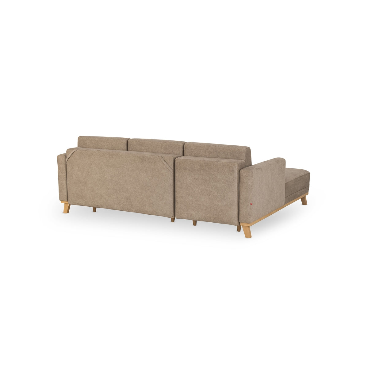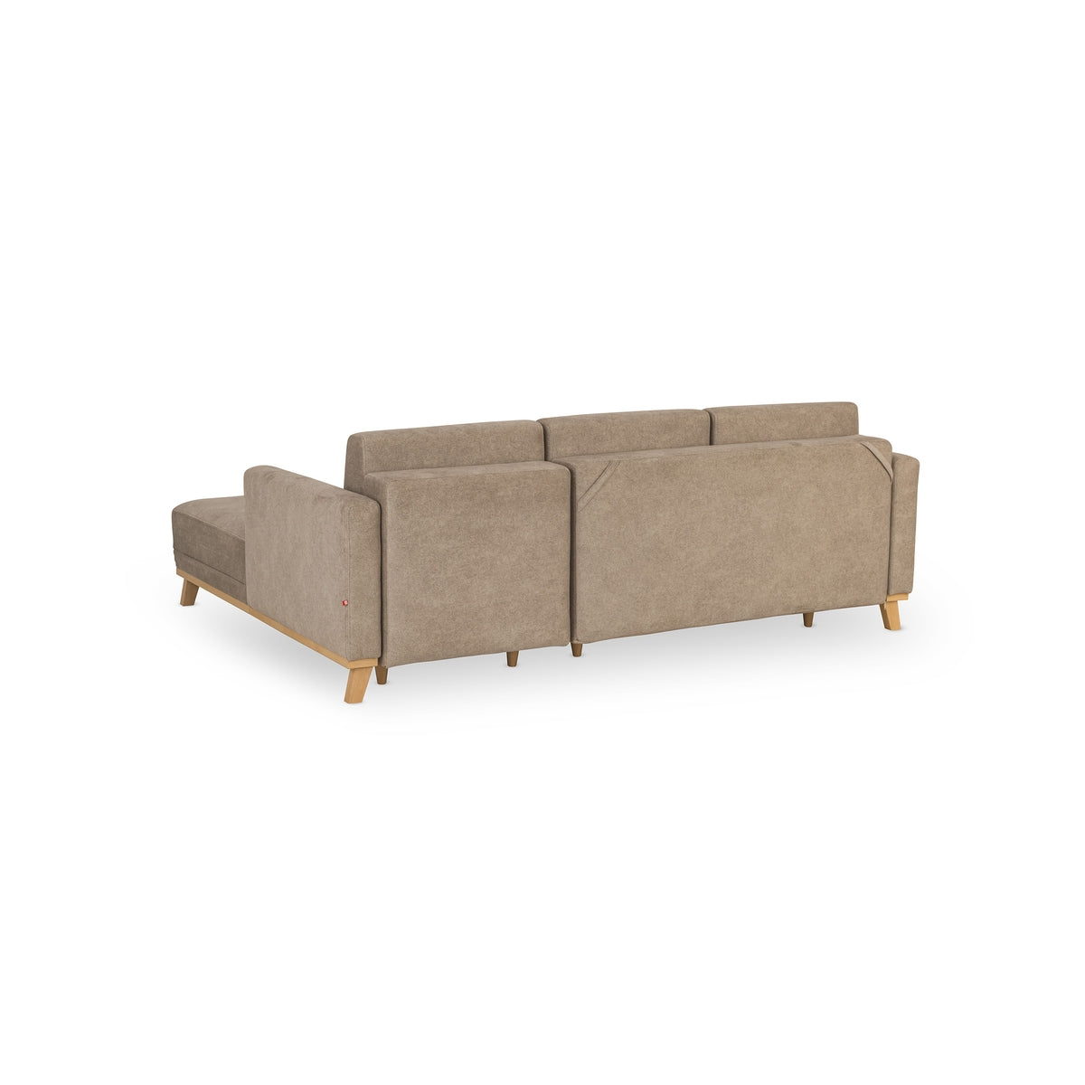 Седалката и облегалката на дивана са с пълнеж от устойчива и еластична HR пяна. Конструкцията на дивана се основава на букова рамка. Краката са от естествена букова дървесина. Ъгловият диван е с разтегателен механизъм тип падащ гръб.