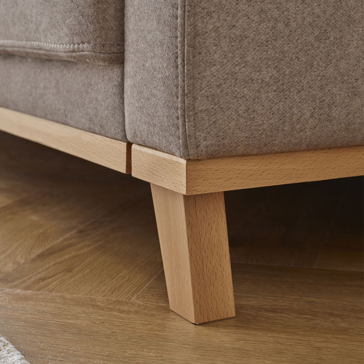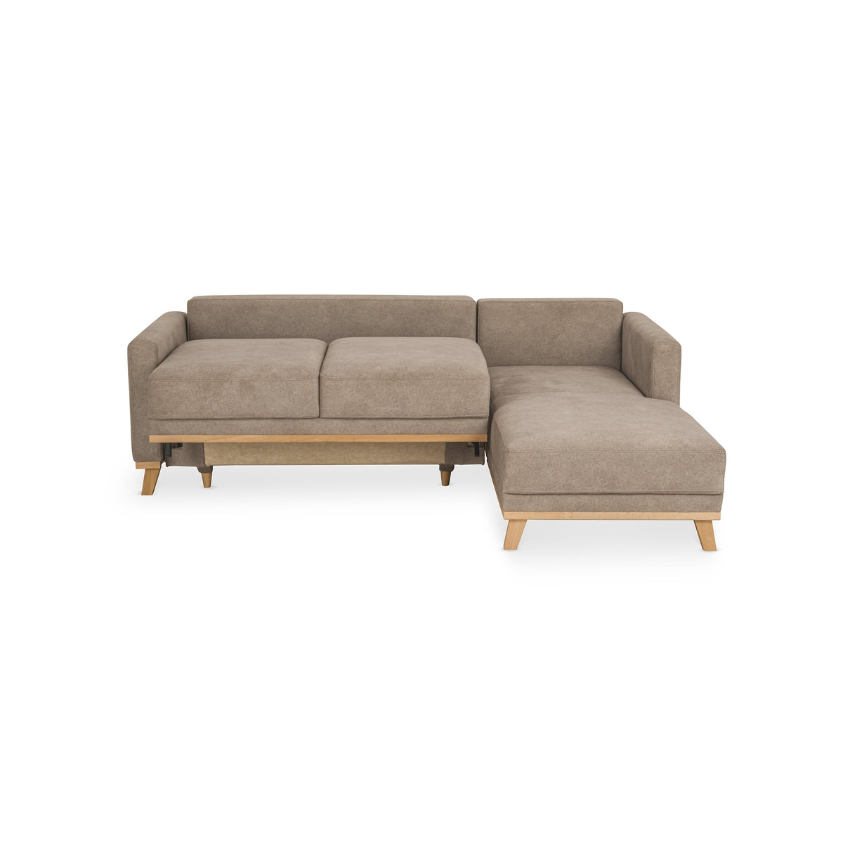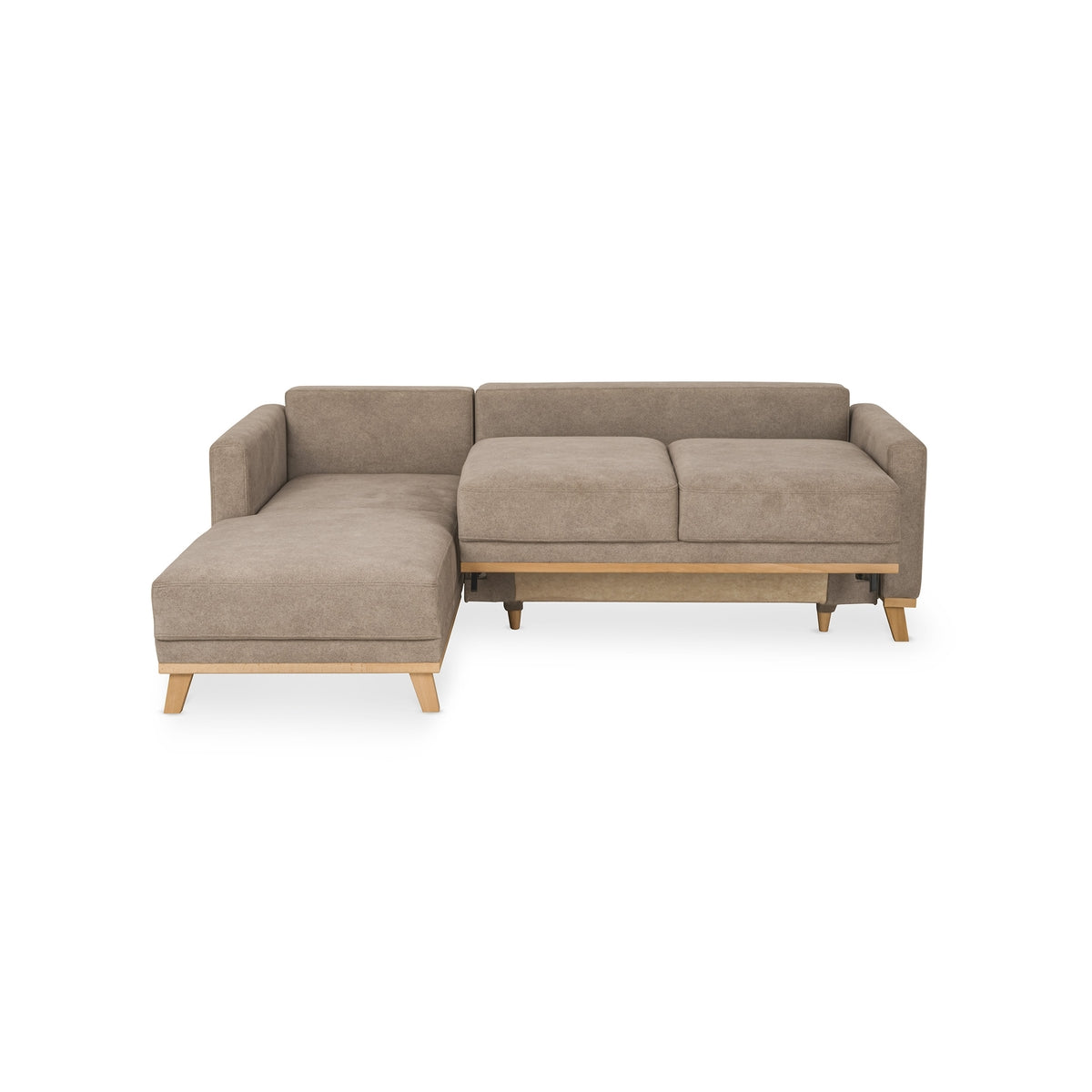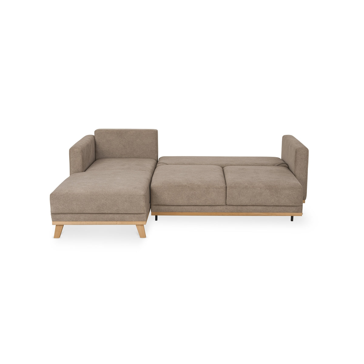 Седалката и облегалката на дивана са с пълнеж от устойчива и еластична HR пяна. Конструкцията на дивана се основава на букова рамка. Краката са от естествена букова дървесина. Ъгловият диван е с разтегателен механизъм тип падащ гръб.