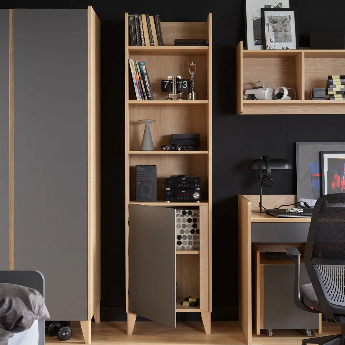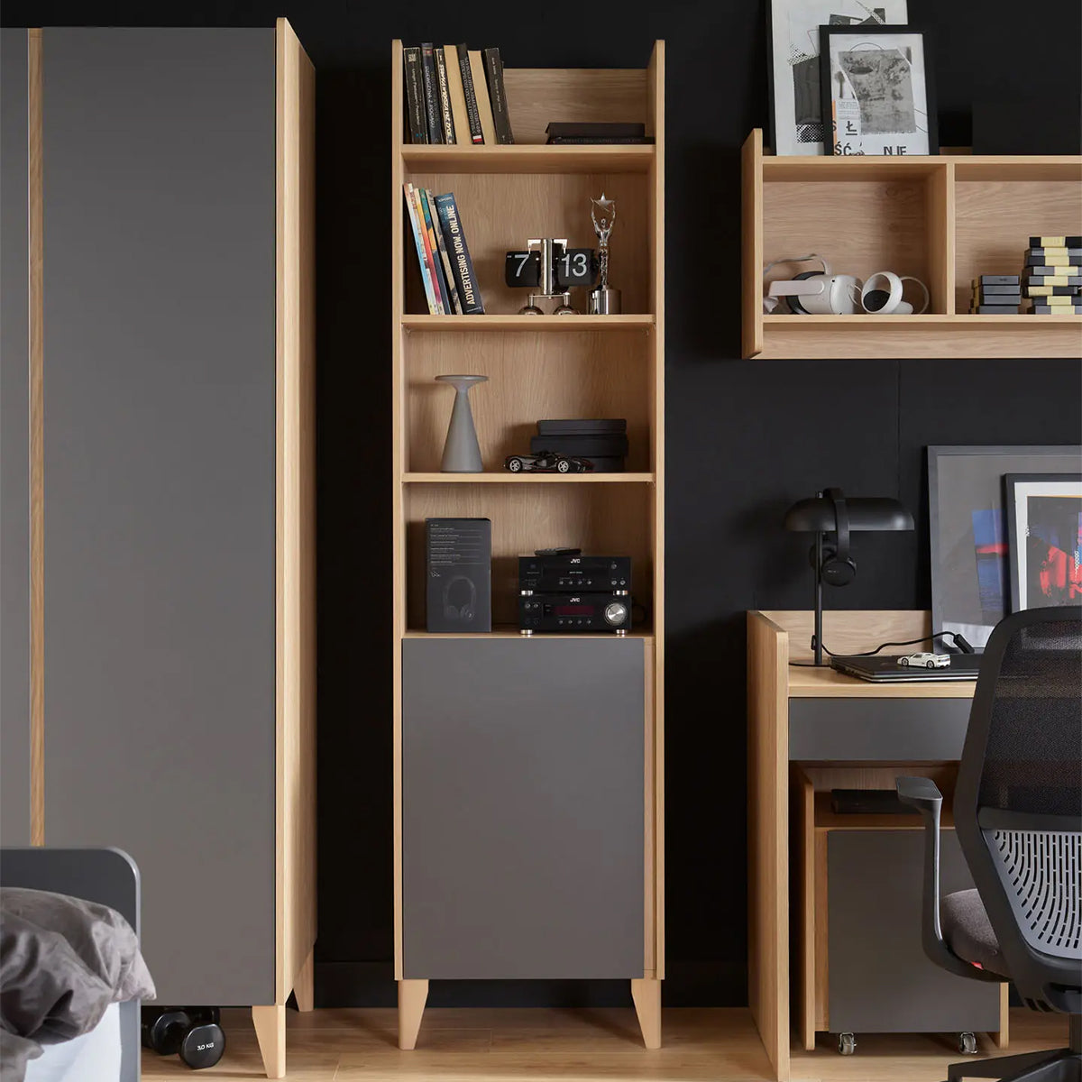 Тясната библиотека Muve е интелигентно решение за малки пространства – тя съчетава визуална лекота с функционално разнообразие. С възможност за персонализиране и комбинация с други елементи от колекцията, тя се адаптира към нуждите и стила на всеки дом.