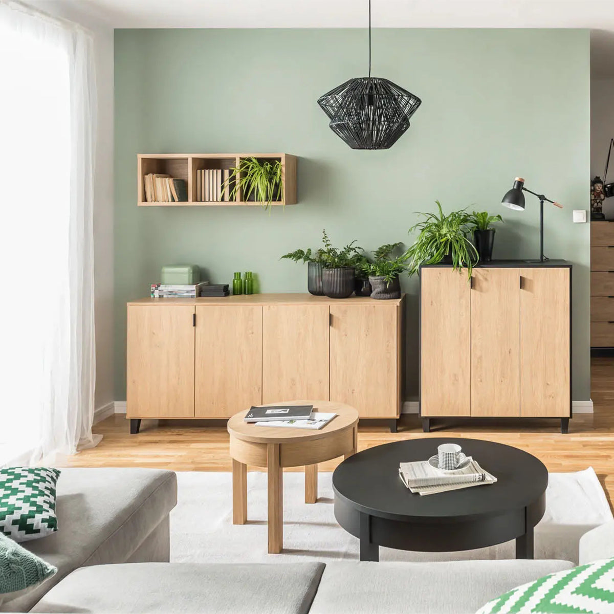 Може да избирате от четирите елегантни цвята: дъб, бял, сив или черен. Вашият бюфет ще се впише перфектно във всяко пространство, като добави стил и хармония.