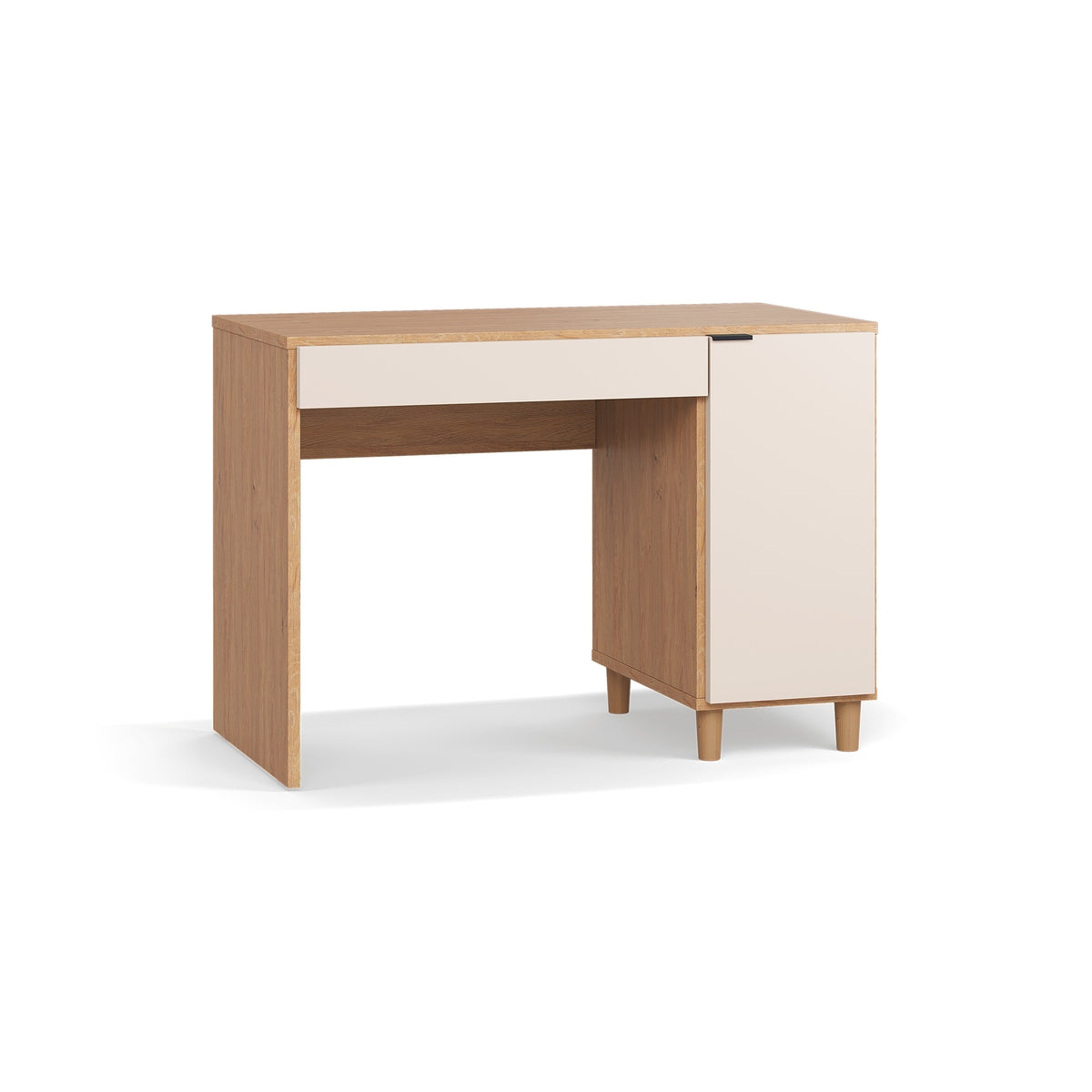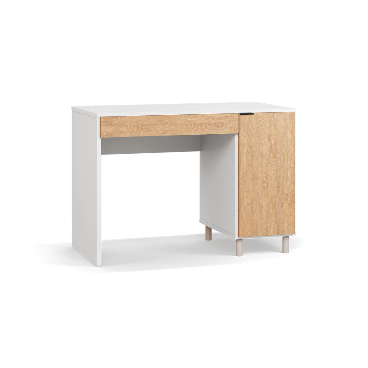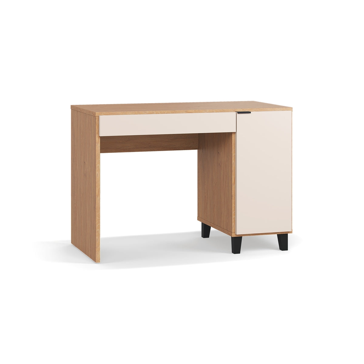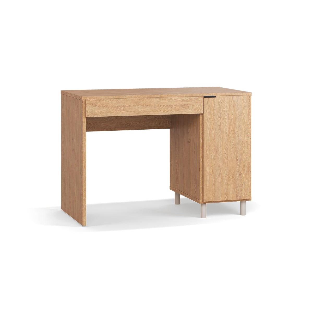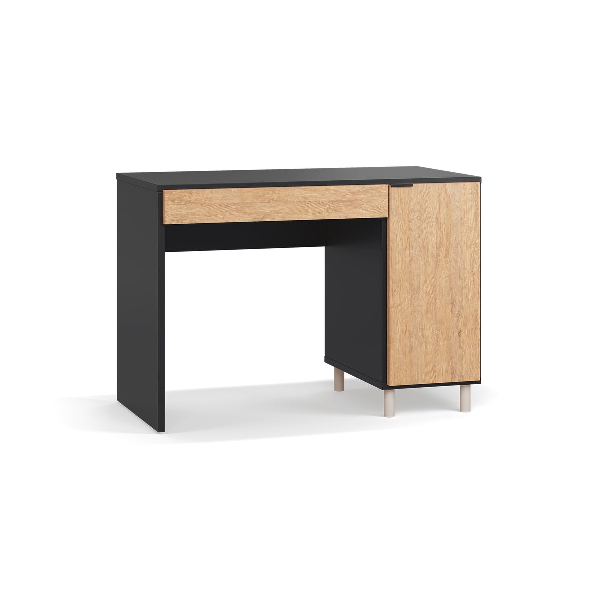 Бюрото се предлага в четири изискани цвята: дъб, бял, пясъчно бежов или черен. То ще се впише във всеки интериор и ще добави изтънченост и уют към работното ви пространство.