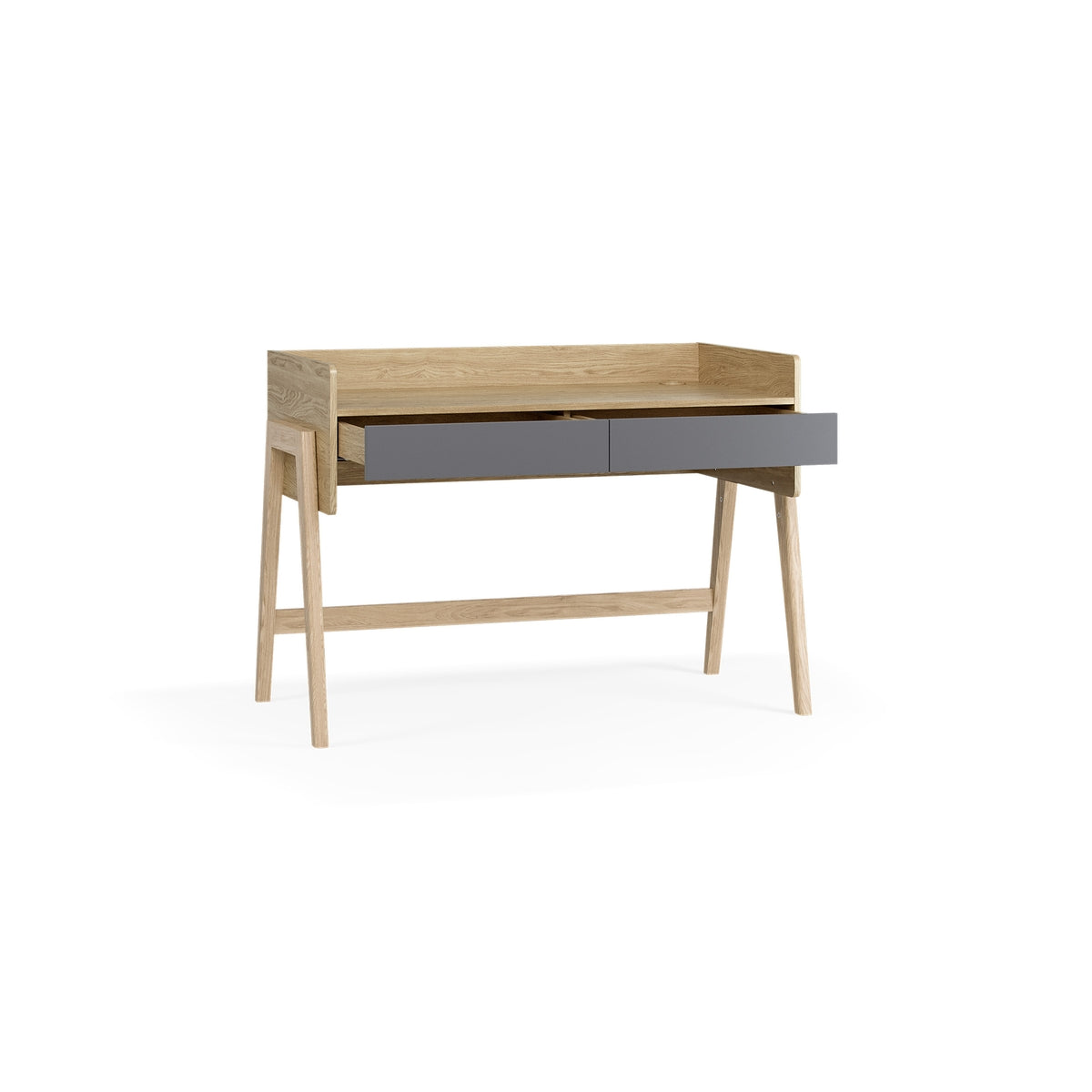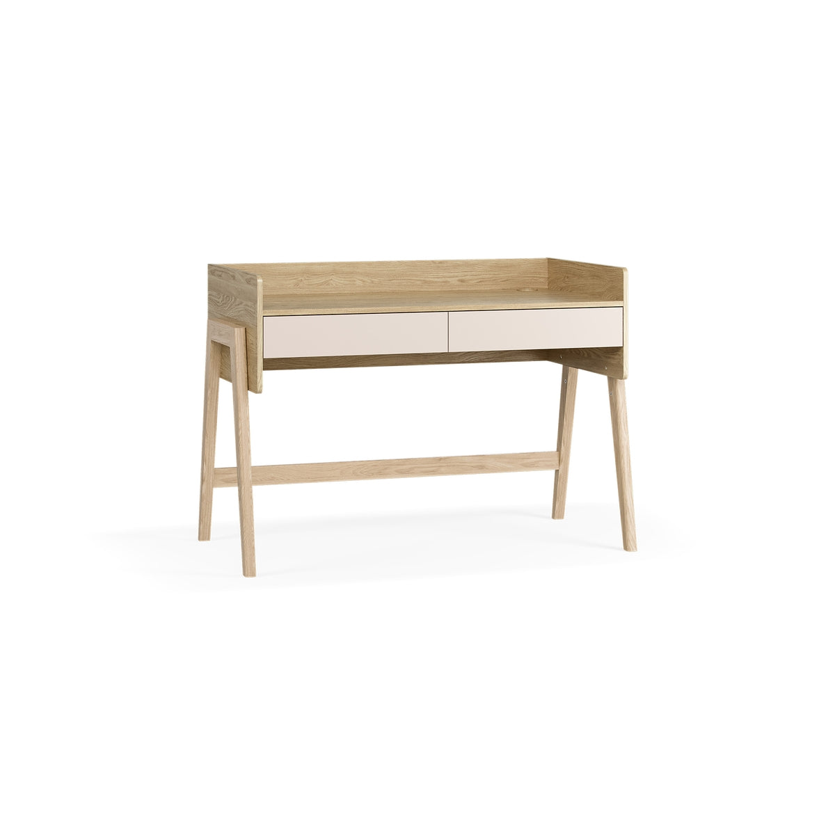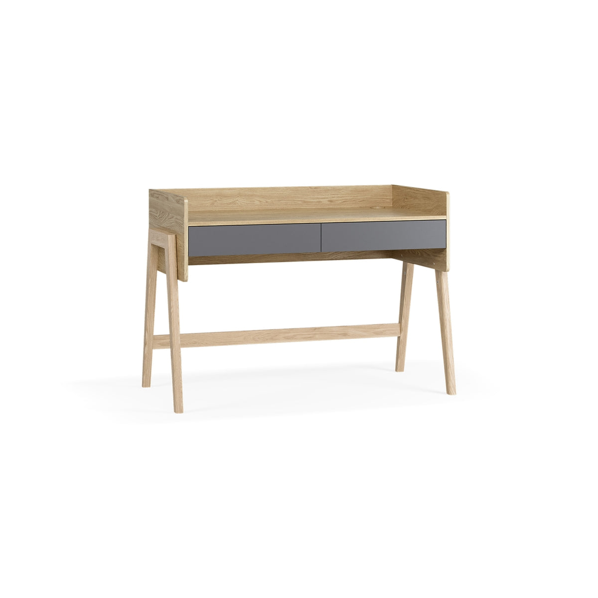 Фронтовете на чекмеджетата могат да бъдат избрани в един от три налични цвята, за да се съчетаят с останалото обзавеждане. В колекцията ще откриете и по-голям модел на бюрото с ширина 140 см, както и мобилен контейнер, който може да се съхранява под него и служи като допълнителен шкаф.