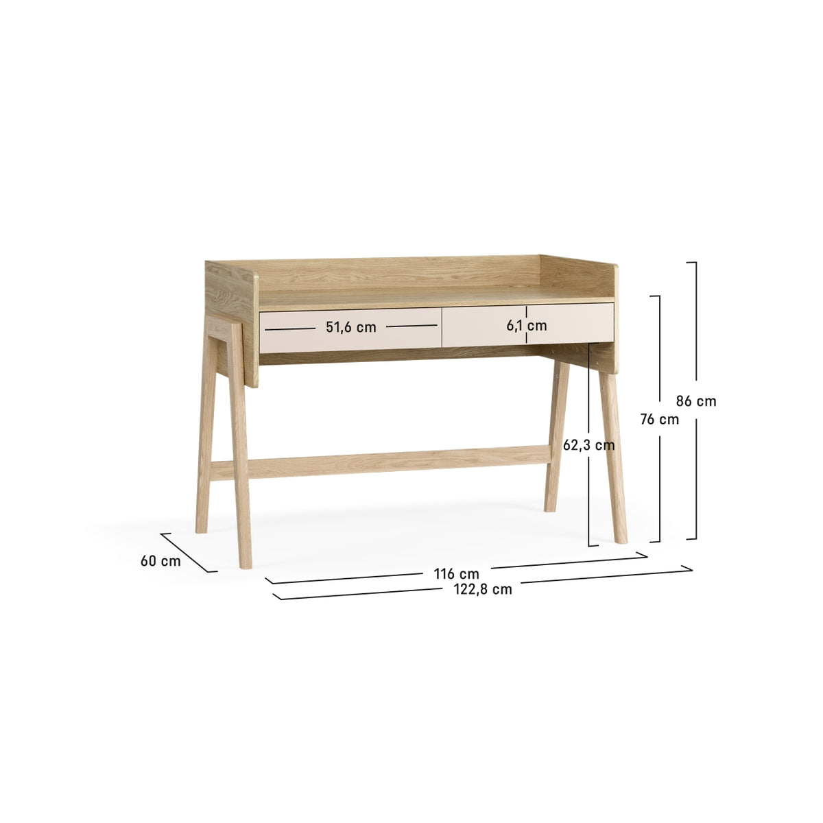 Дървената рамка на бюрото е стабилна и позволява двустепенно регулиране на височината – от 68 до 76 см. Така бюрото „расте“ заедно с детето и осигурява: