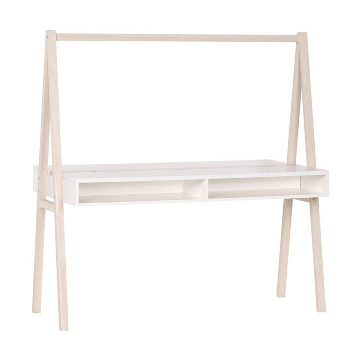 Двулицево бюро с дървена рамка за окачване на декорации и органайзери. Има плот с регулируема височина, затварящи се ниши и отвор за преминаване на кабели. Част е от колекция SPOT YOUNG, създадена за детски и младежки стаи.