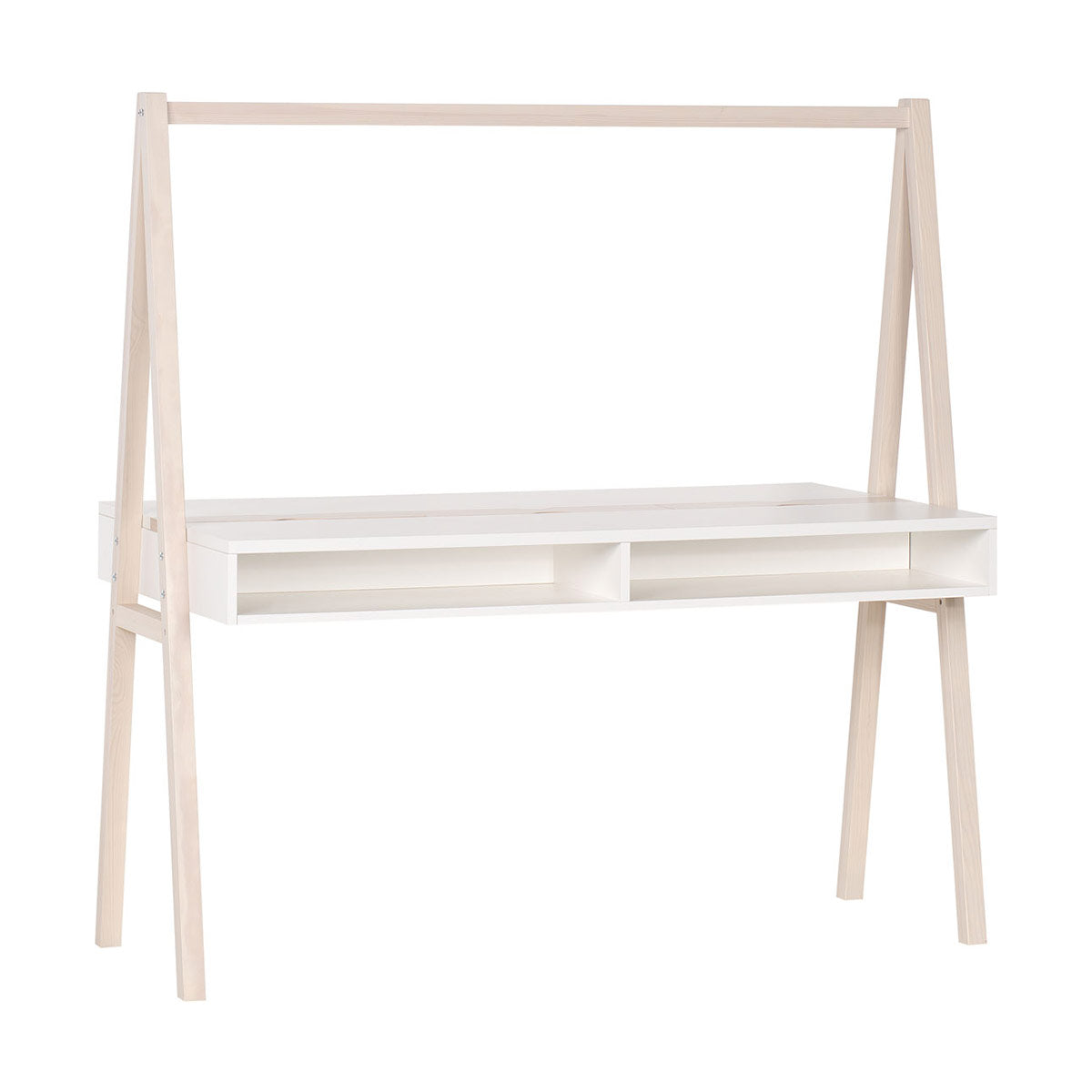 Двулицево бюро с дървена рамка за окачване на декорации и органайзери. Има плот с регулируема височина, затварящи се ниши и отвор за преминаване на кабели. Част е от колекция SPOT YOUNG , създадена за детски и младежки стаи.