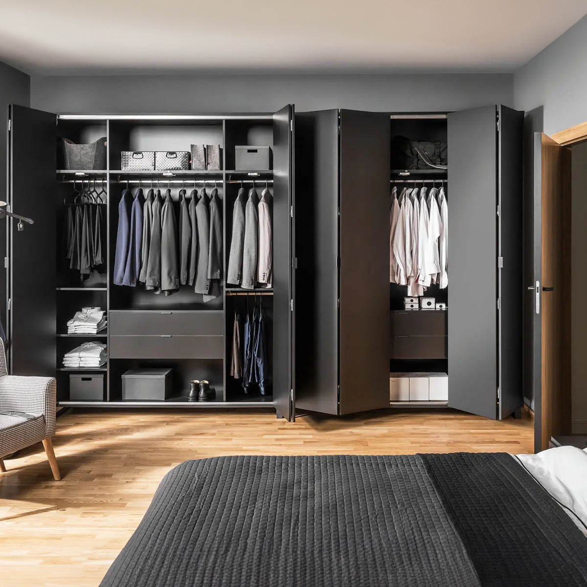 Можете да избирате между висококачествени ламинирани плоскости и боядисани плоскости, финиширани с матов лак, за да създадете гардероб, който идеално отговаря на вашите предпочитания.