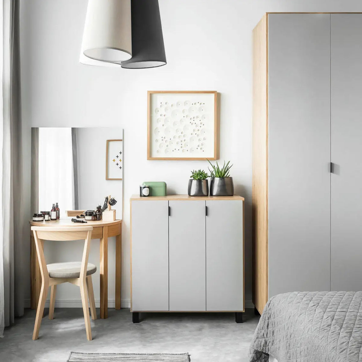 Възможността за персонализиране не се ограничава само до цвета. Можете да променяте и всеки елемент от гардероба: корпус, вратички, крачета и дръжки. Създайте комбинация, която отразява вашата индивидуалност и придава уникален вид на пространството.