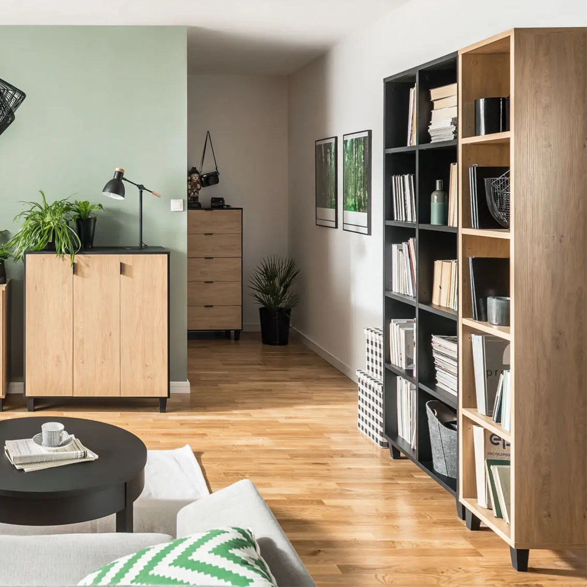 Изберете библиотека от колекция SIMPLE, която съчетава изискан дизайн, здравина и функционалност. Предлага се в четири стилни цвята – дъб, бяло, пясъчно бежово и черно – за да се впише идеално във всяко пространство.