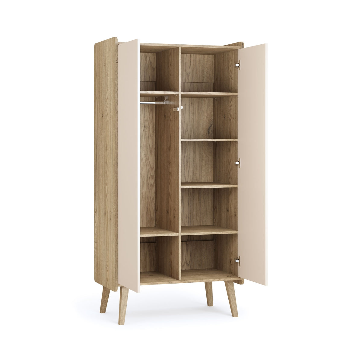 Двукрилният гардероб Vintage Fresh предлага удобство и стил за детска стая. Просторният интериор и практичната организация на рафтовете и лоста улесняват подреждането на дрехи и аксесоари.
