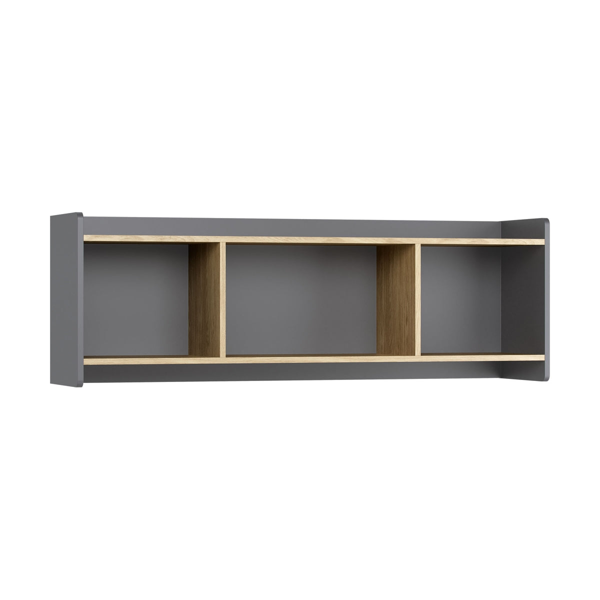Гърбът и страните на етажерката се предлагат в три цвята: дъб, пясъчно бежово и графит. Така лесно ще я адаптирате към стила на помещението. Заоблените ръбове добавят модерен акцент и подобряват безопасността.