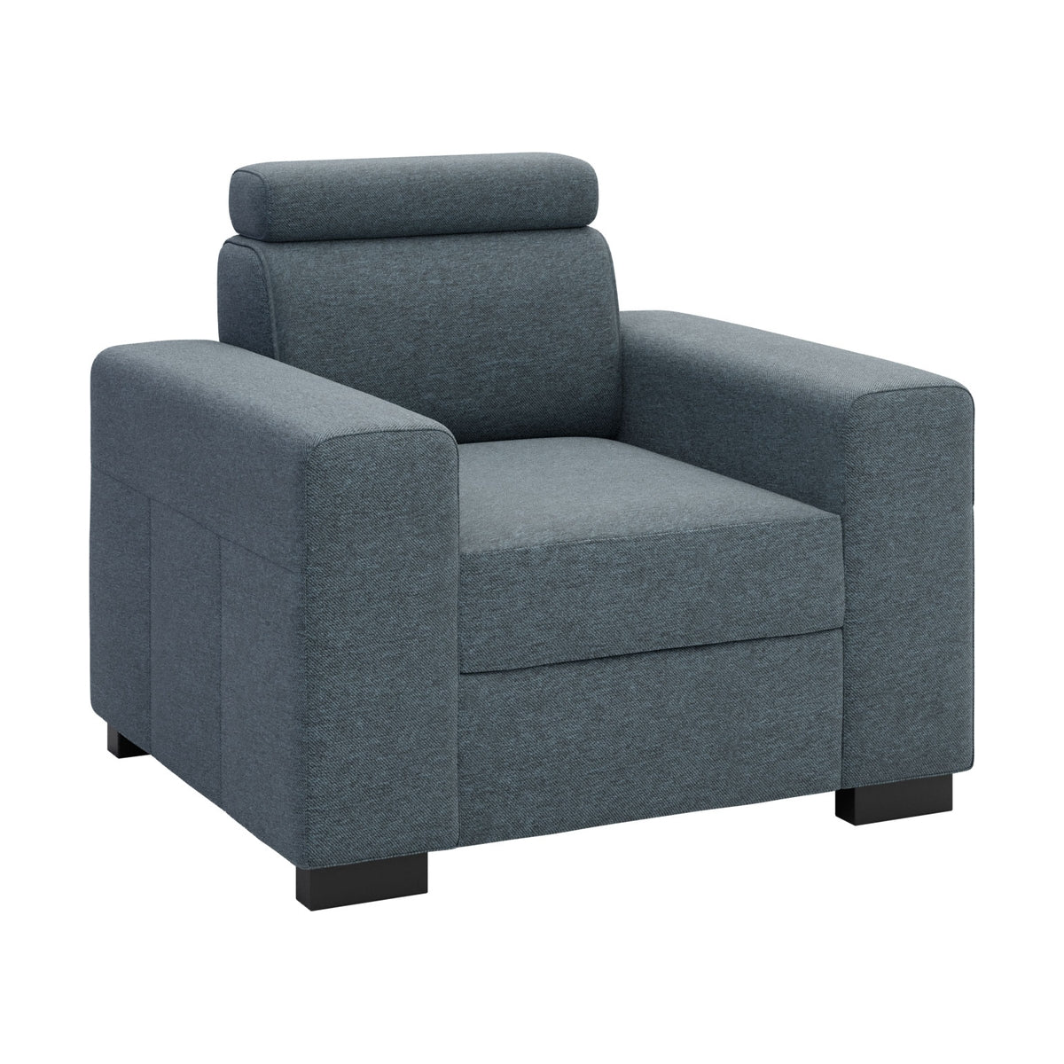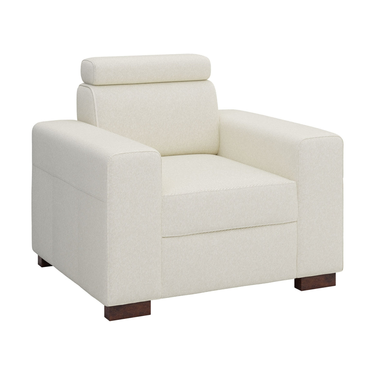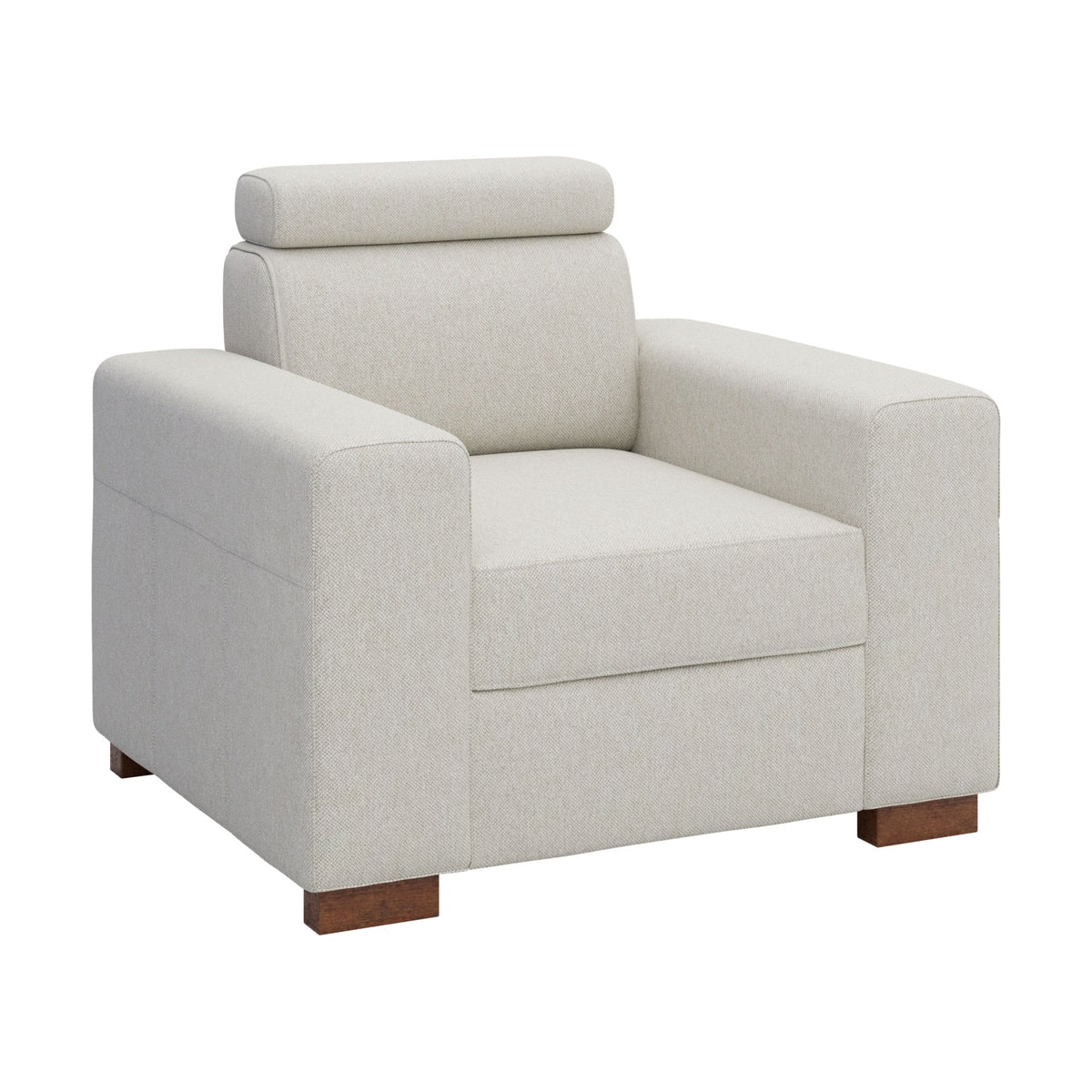 Регулируемата облегалка за глава дава възможност да регулирате фотьойла спрямо своите предпочитания. Комфортът се подобрява и от меката облегалка и големите подлакътници.