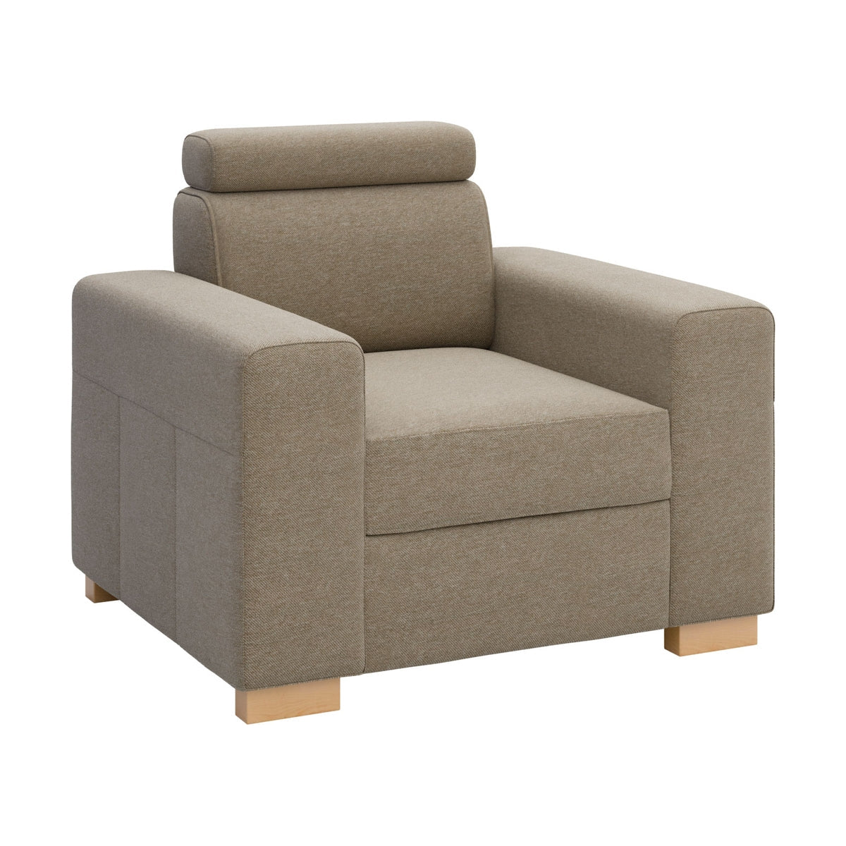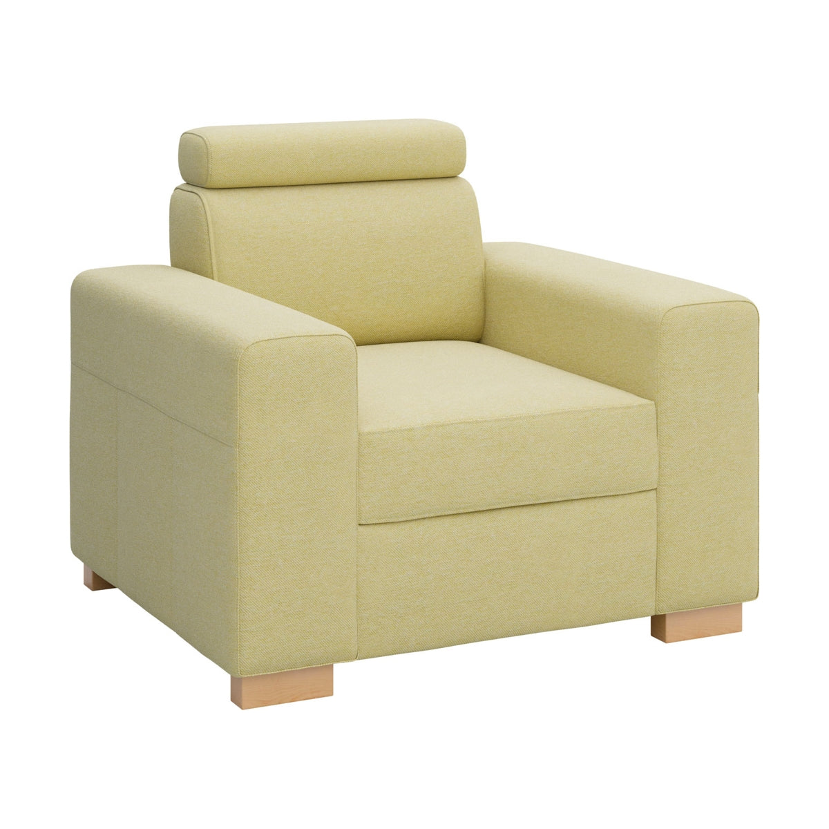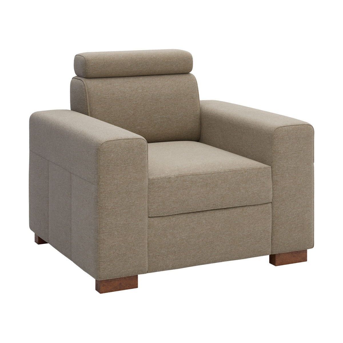 Регулируемата облегалка за глава дава възможност да регулирате фотьойла спрямо своите предпочитания. Комфортът се подобрява и от меката облегалка и големите подлакътници.
