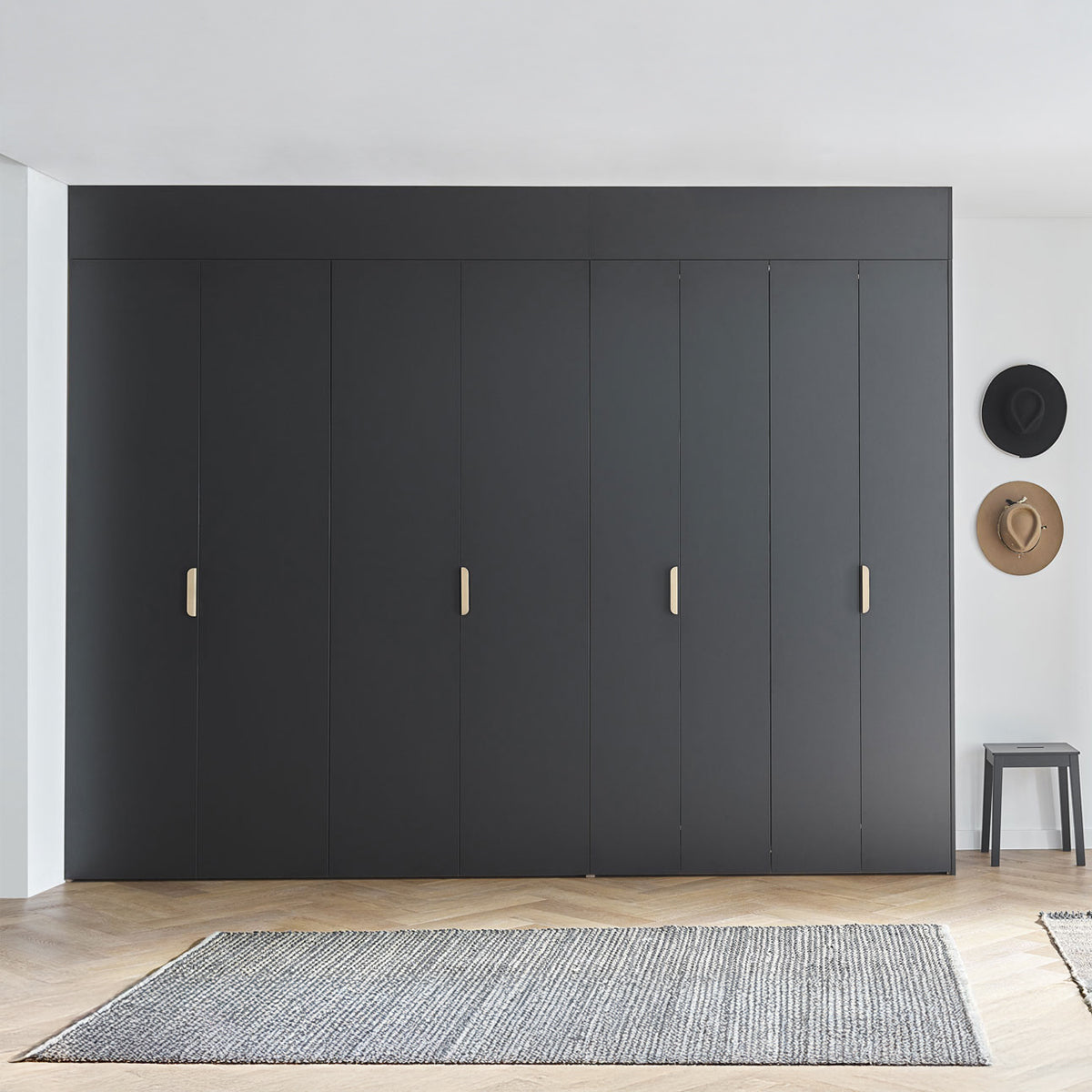 Сгъваемите врати с плавно затваряне не само спестяват място, но и осигуряват удобен достъп до цялото съдържание на гардероба. Елегантно скритите панти и тиха работа при отваряне и затваряне повишават усещането за комфорт.