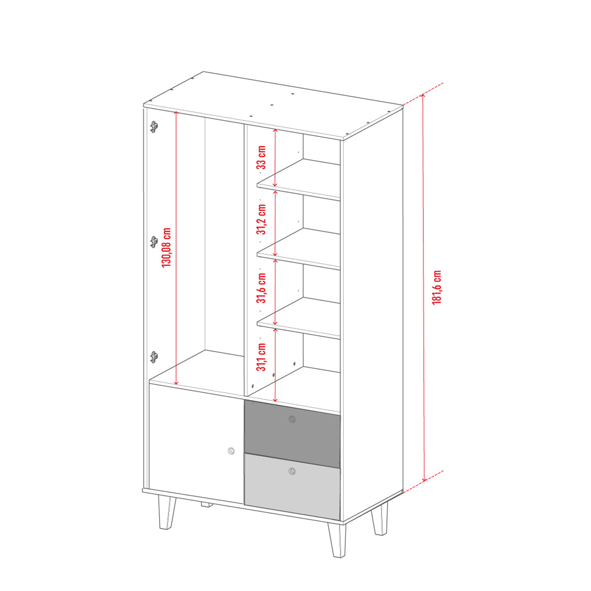 Представяме Ви този практичният гардероб с 2 врати от колекция CONCEPT. Функционалното вътрешно разпределение на гардероба улеснява поддържането на ред, като Ви позволява да организирате нещата според Вашите нужди.