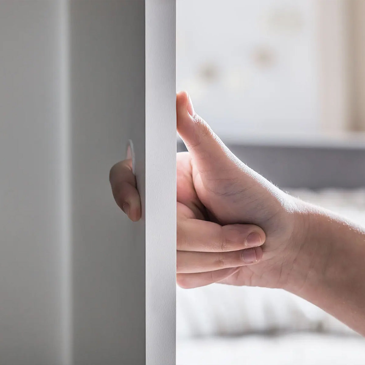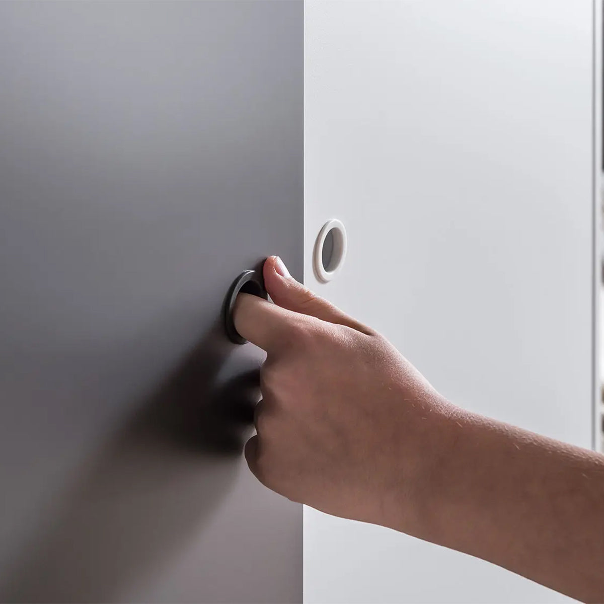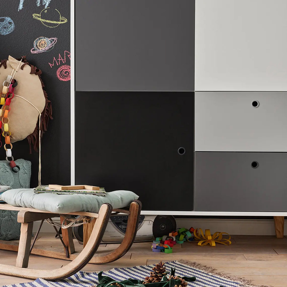 - Благодарение на удобните дръжки под формата на отвори със силиконова облицовка, достъпът до вътрешността на гардероба е особено удобен;