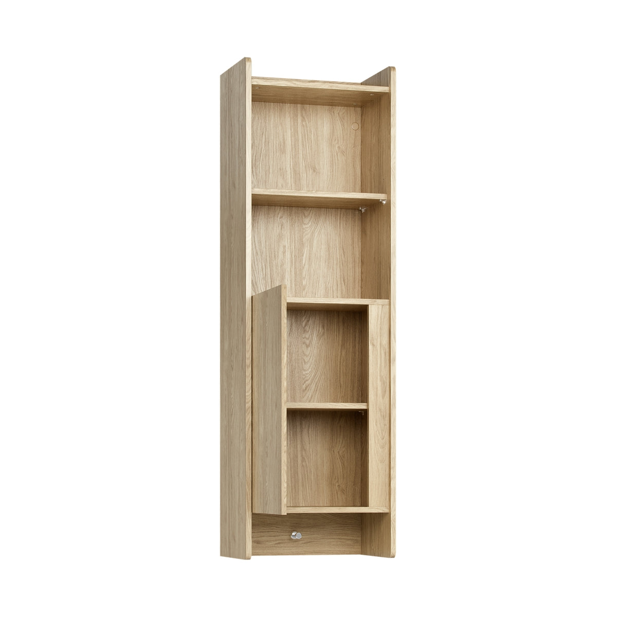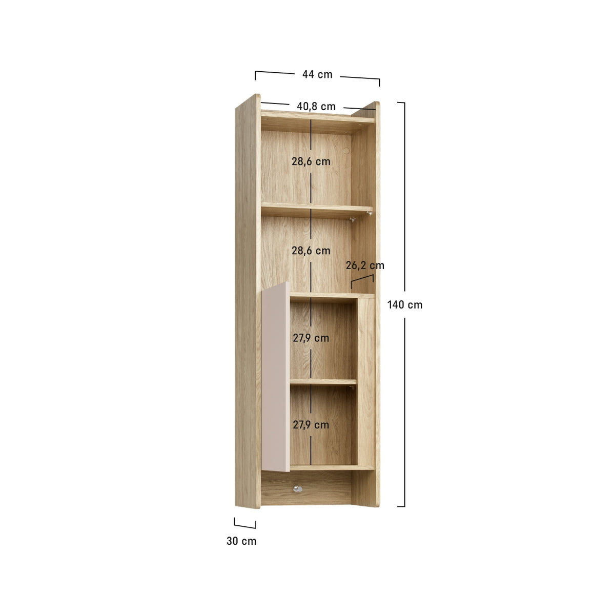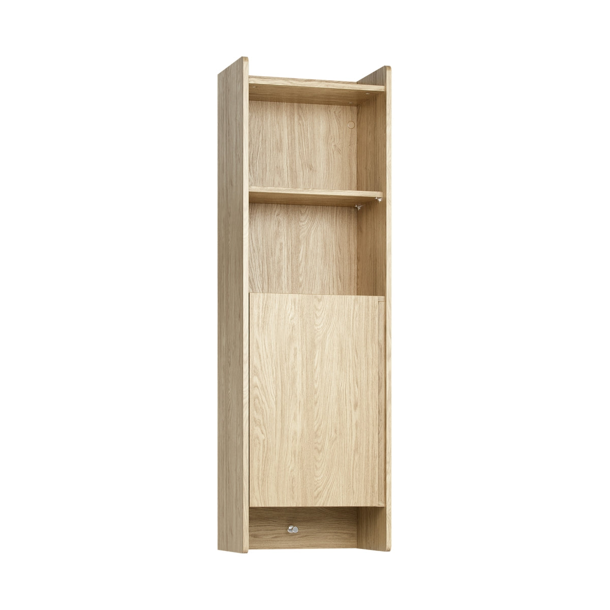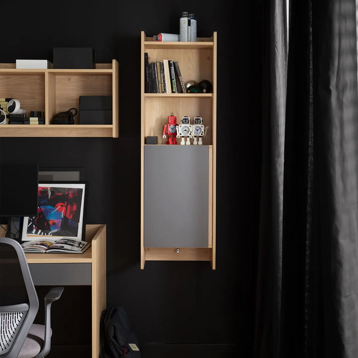 С колоната за стена Muve лесно ще организирате книги, аксесоари и декорации, без да заемате място на пода. Комбинацията от отворени рафтове и затворен шкаф позволява балансирано съхранение и естетика, а вградената кука улеснява окачването на раници или чанти.