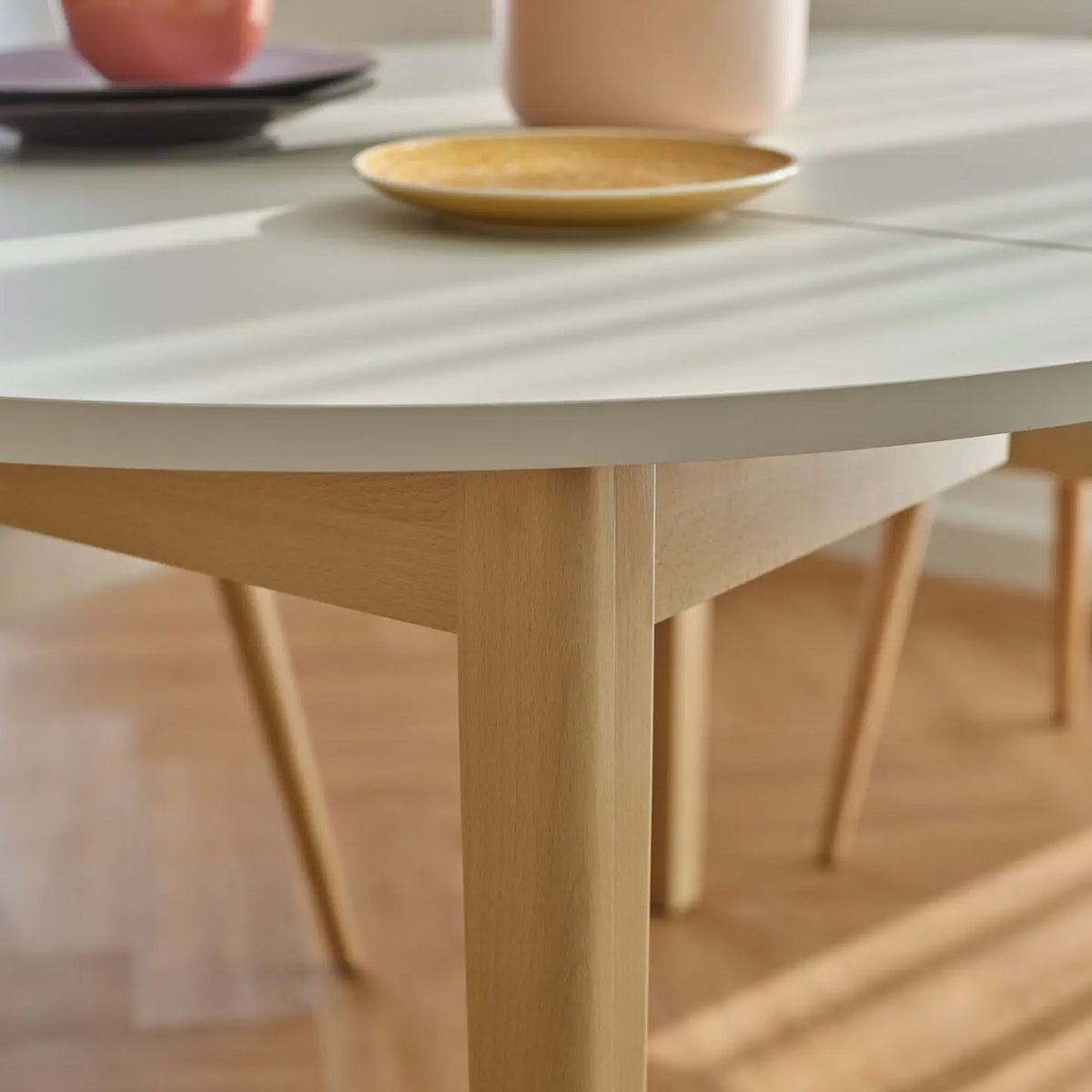 Елегантната маса Konso е отличен избор за по-малки пространства. Благодарение на компактния си размер и разтегателния механизъм, тя предлага практично решение за ежедневна употреба и специални поводи.
