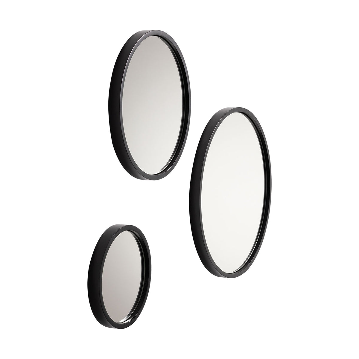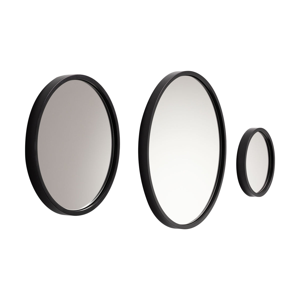 Комплектът огледала Tiko е комплект от три кръгли огледала с диаметри 20, 30 и 40 см, което ви дава пълна свобода при създаването на уникални аранжировки. Благодарение на различните размери на огледалата, можете свободно да ги аранжирате на стената, адаптирайки ги към интериорния дизайн.