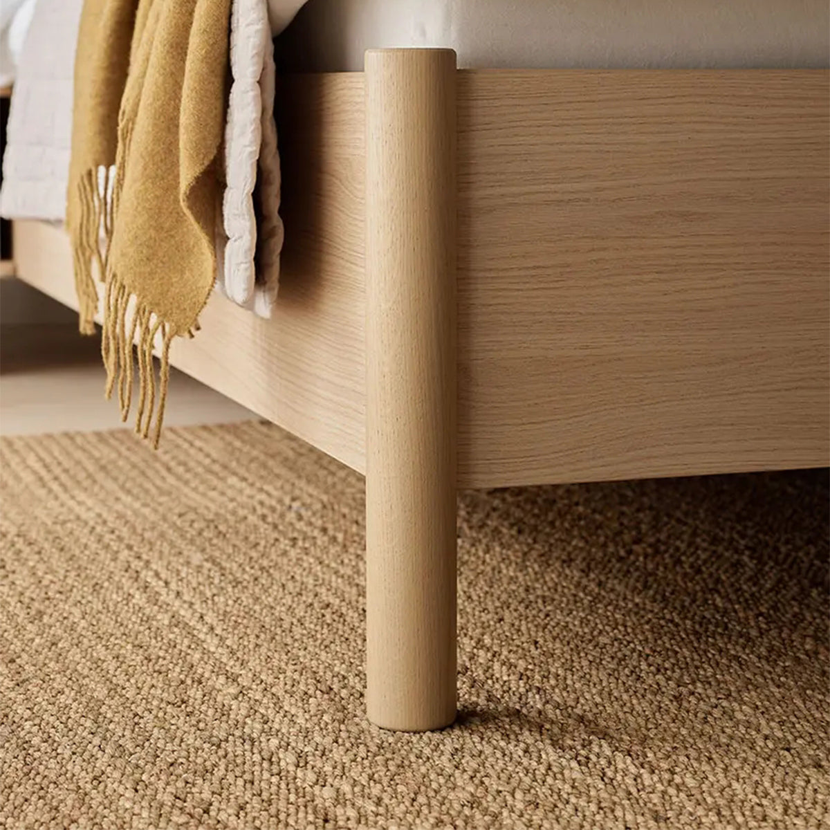 - Високите дъбови крака правят леглото да изглежда леко и елегантно;