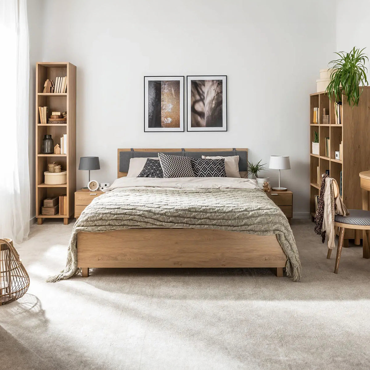 Моделът се предлага в четири елегантни цвята: дъб, бял, пясъчно бежов и черен. Благодарение на разнообразието от цветове, вашето легло ще се впише хармонично във всяко пространство, добавяйки стил и уют.