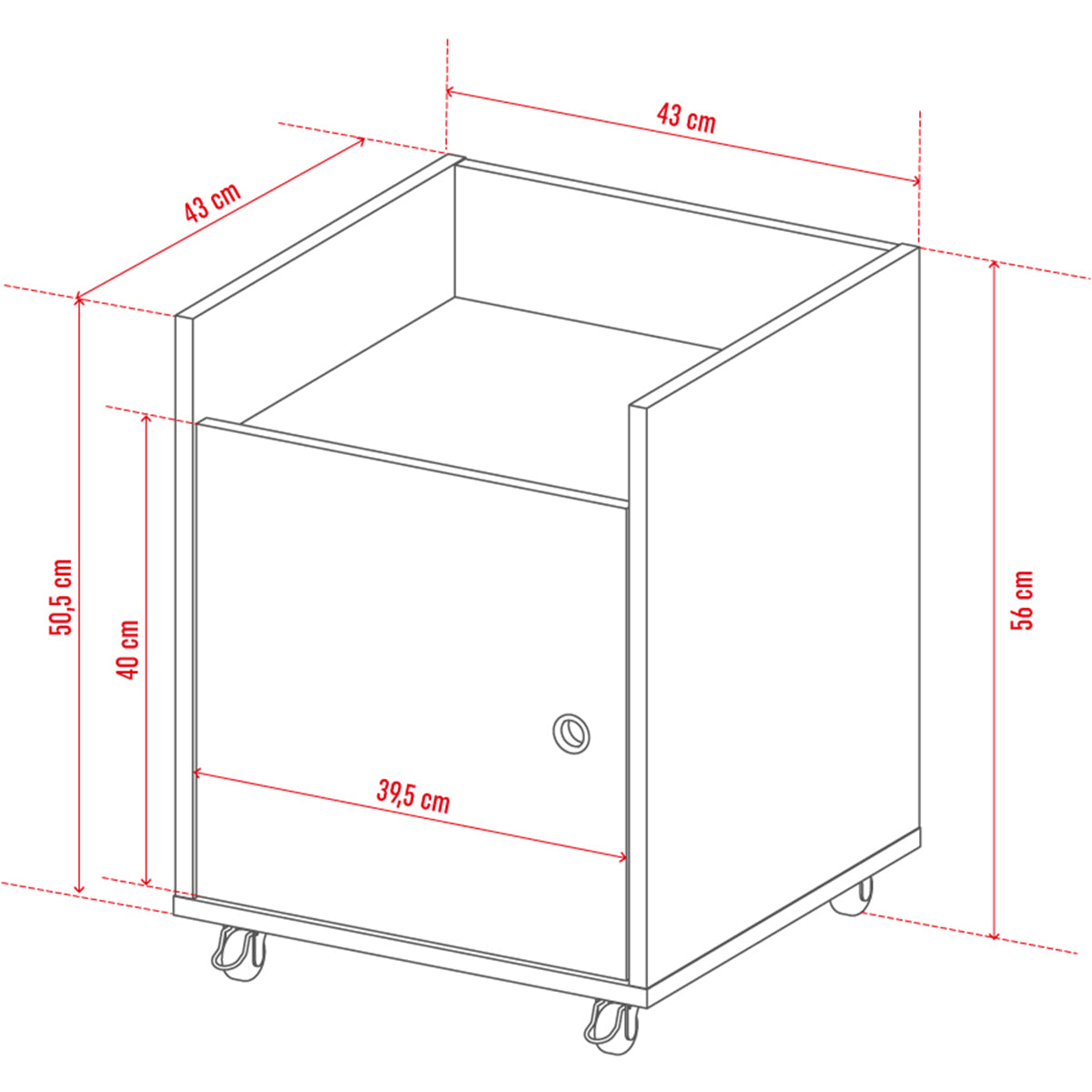 - Благодарение на естетичните колела преместването на контейнера е бързо и удобно. Предните колела са със спирачки, което не позволява на контейнерът да се движи след поставяне на желаното място. Височината на колелото (включено в общата височина на контейнера) е 5,5 см;