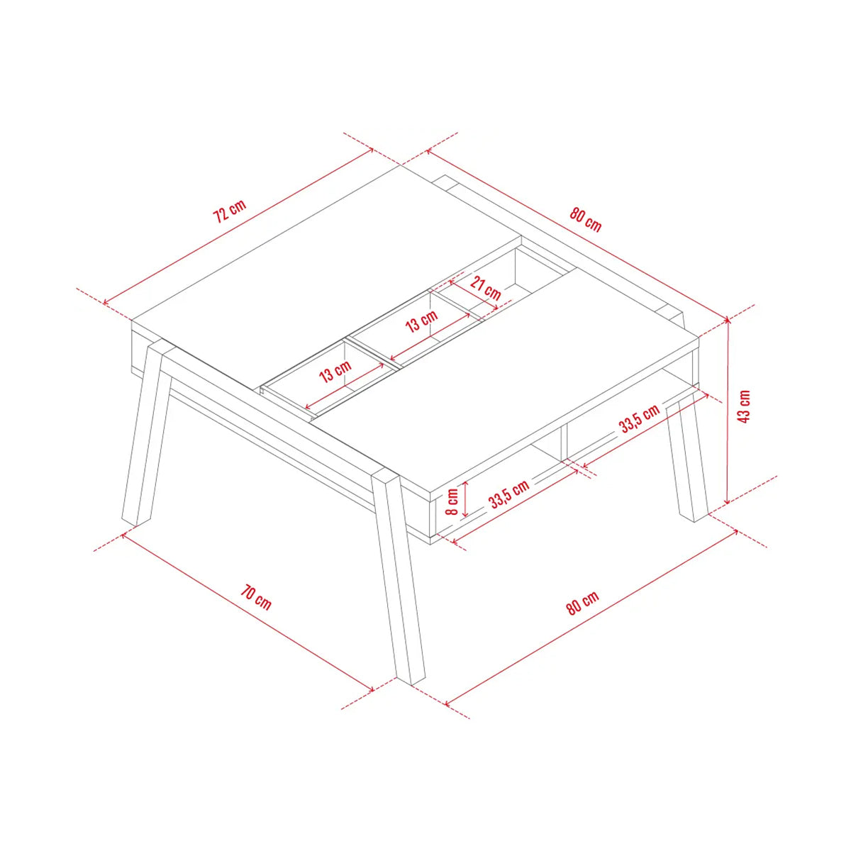 От двете страни на масата има 2 отворени отделения. В тях можете да съхранявате списания, подложки, дистанционни управления, настолни игри и други полезни малки неща.