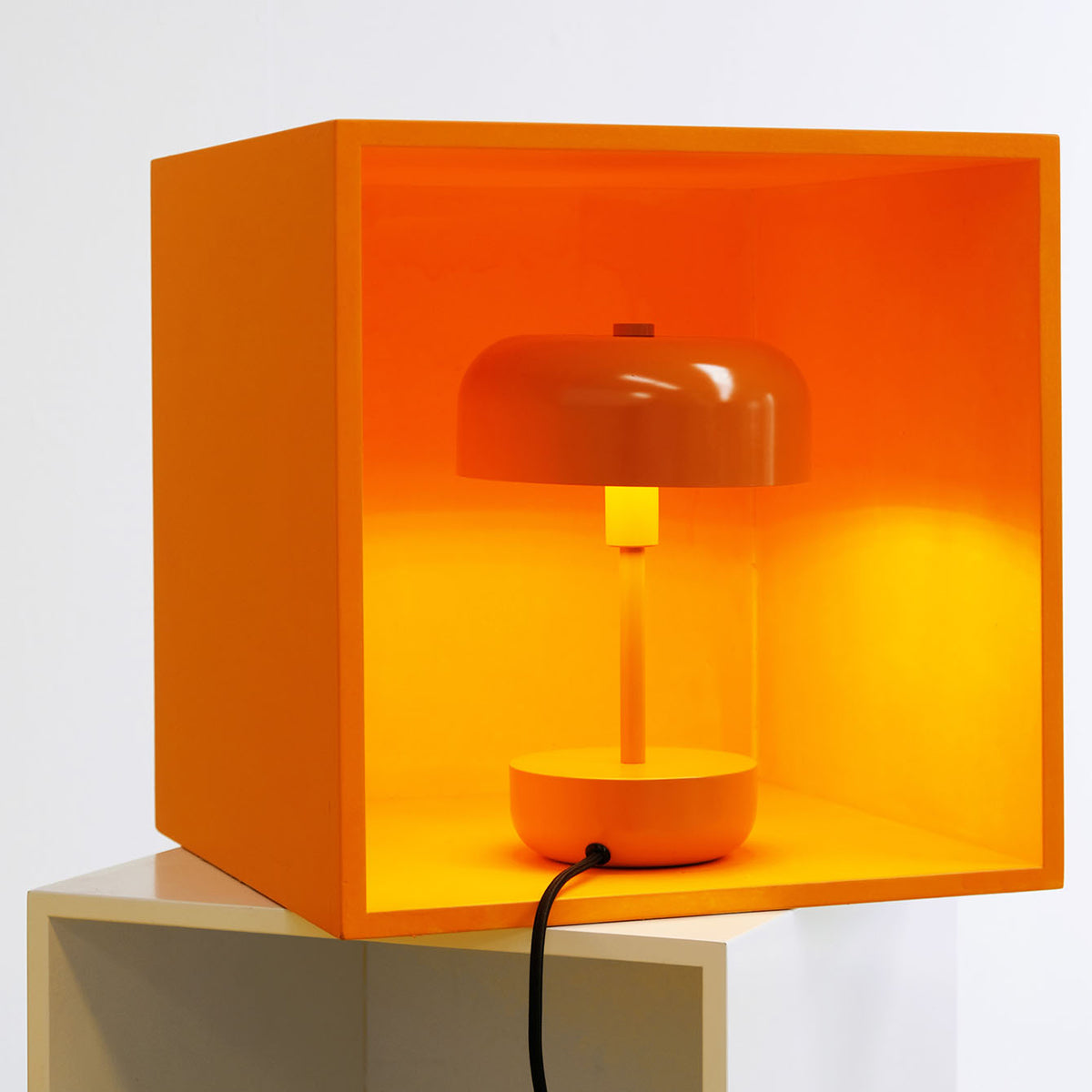 Представеният модел в оранжев цвят ще бъде перфектен в различни части на дома – от хола до спалнята. Благодарение на компактната си и семпла форма, лампата лесно се вписва в различни аранжировки, добавяйки им енергия и свежест.