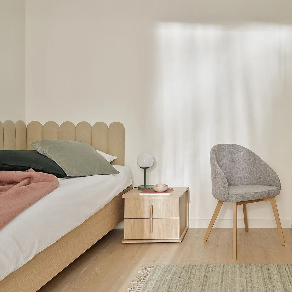 Нощното шкафче с две чекмеджета от колекция OMM ще побере нощна лампа и всички дреболии, към които обичате да посягате преди да заспите.