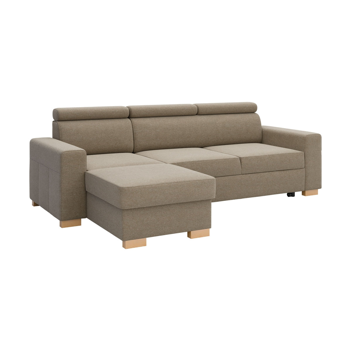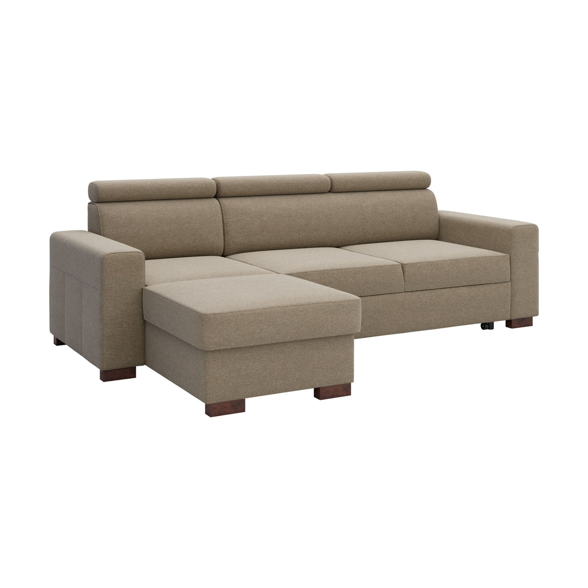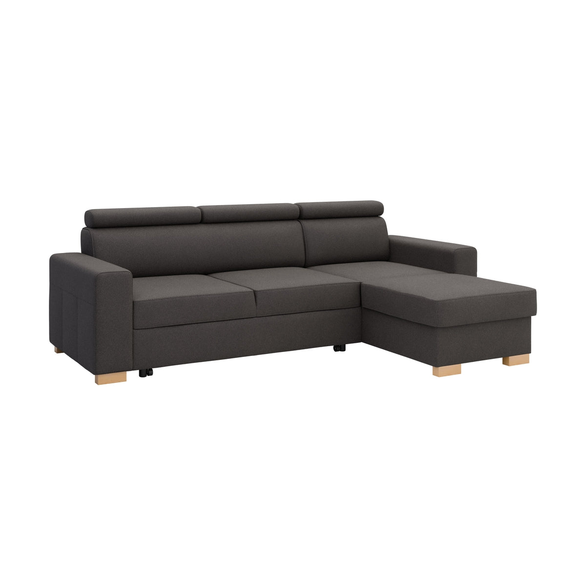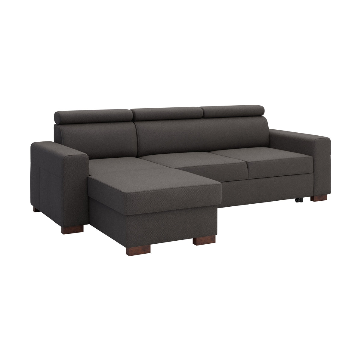 Ъгловия диван може лесно да се разтегне, за да се подготви за сън - просто изтеглете топ матрака и го издърпайте нагоре. Получената по този начин спална площ (130 х 208 см) Ви позволява да организирате удобно настаняване за 2 души.
