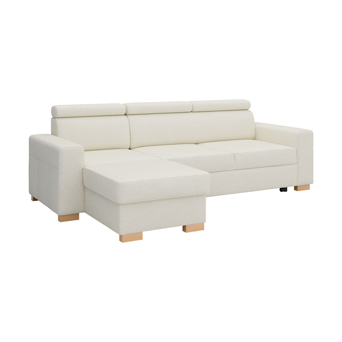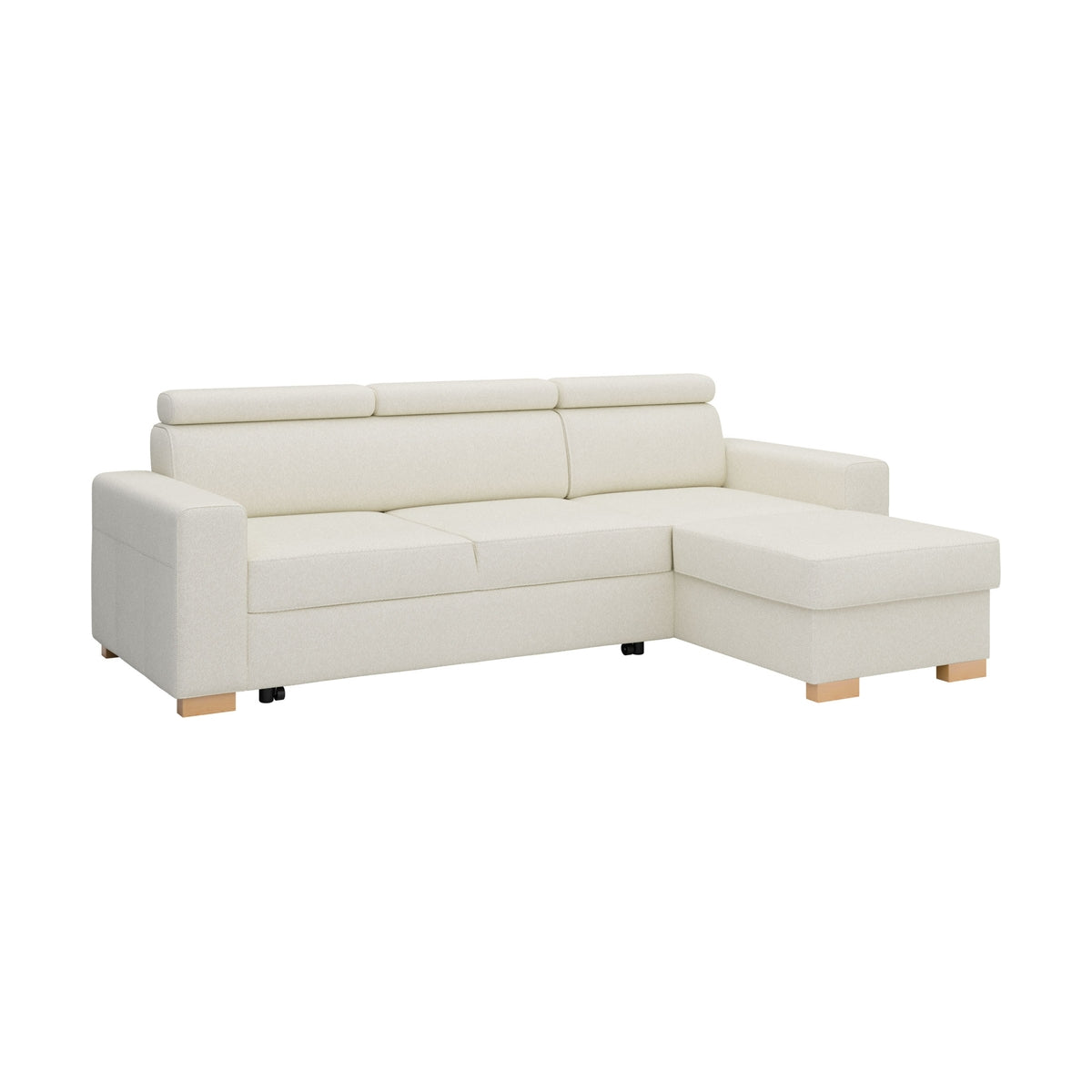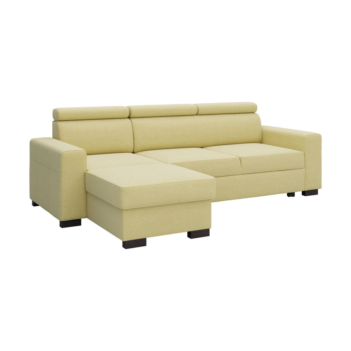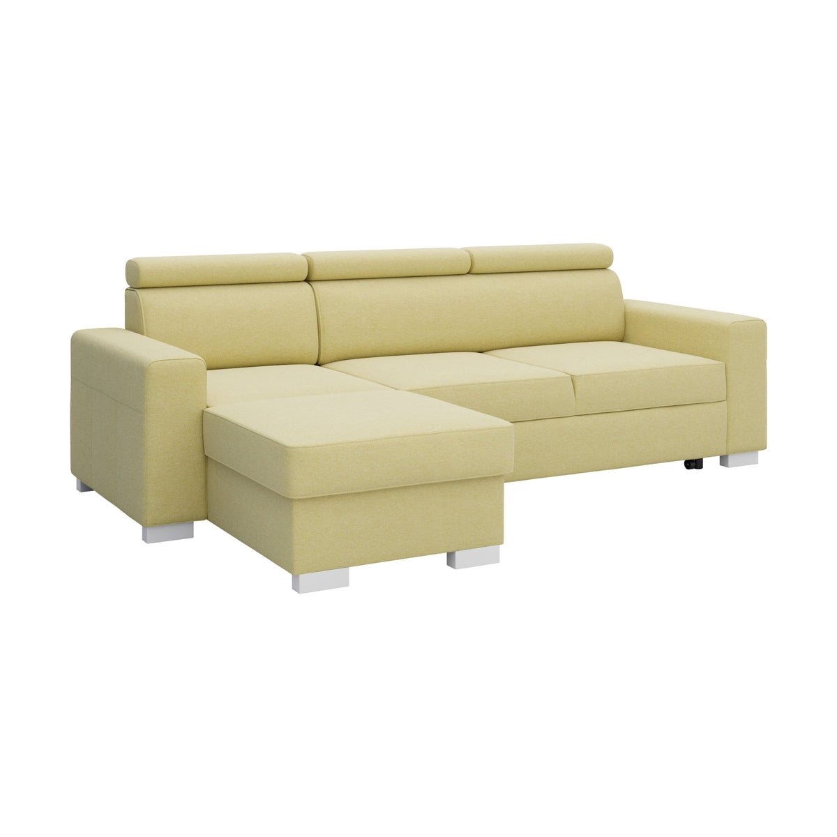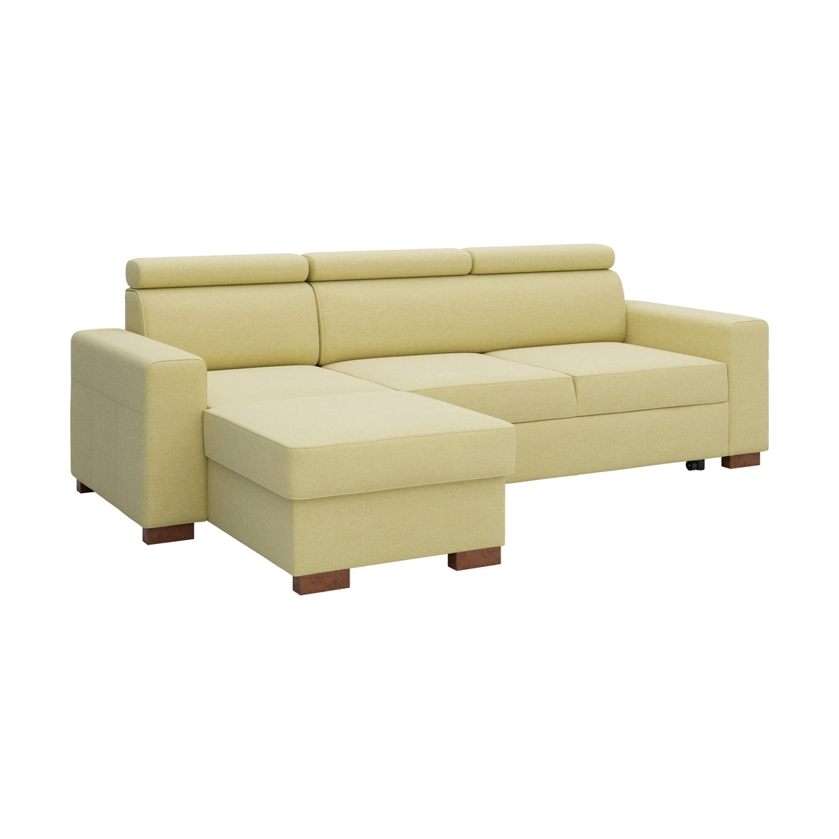 Ъгловия диван може лесно да се разтегне, за да се подготви за сън - просто изтеглете топ матрака и го издърпайте нагоре. Получената по този начин спална площ (130 х 208 см) Ви позволява да организирате удобно настаняване за 2 души.