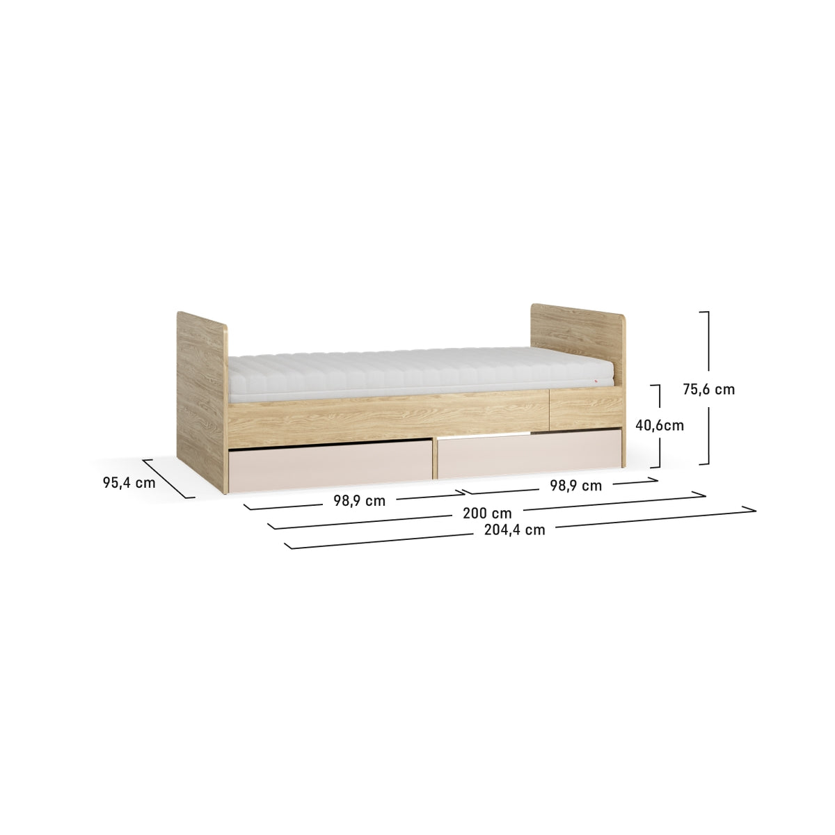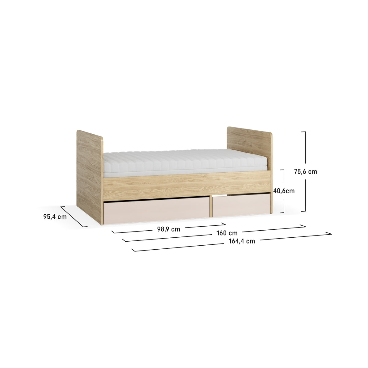- Леглото се разтяга според нуждите – от 90 × 160 см до стандартен размер 90 × 200 см
