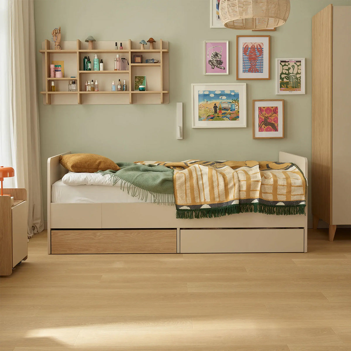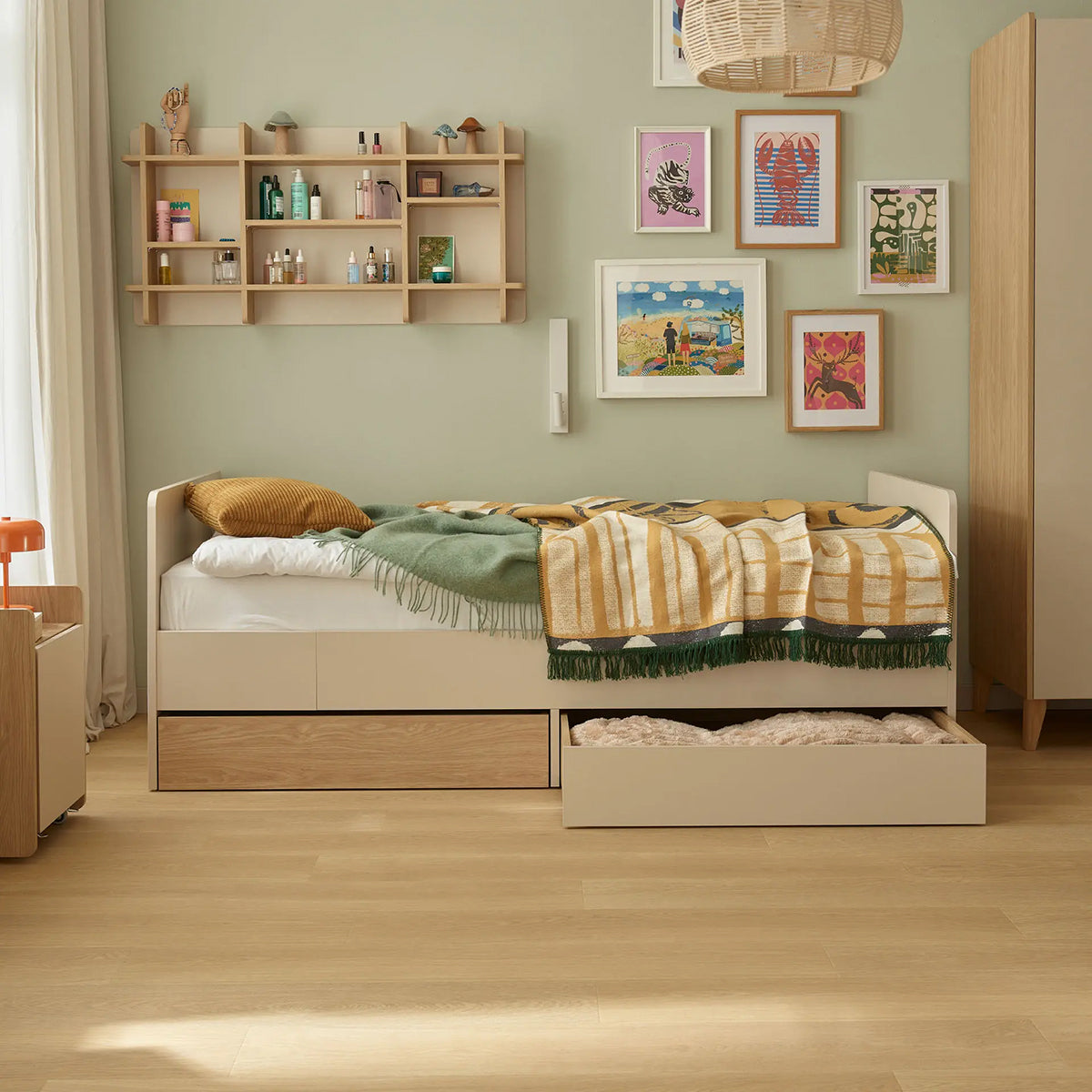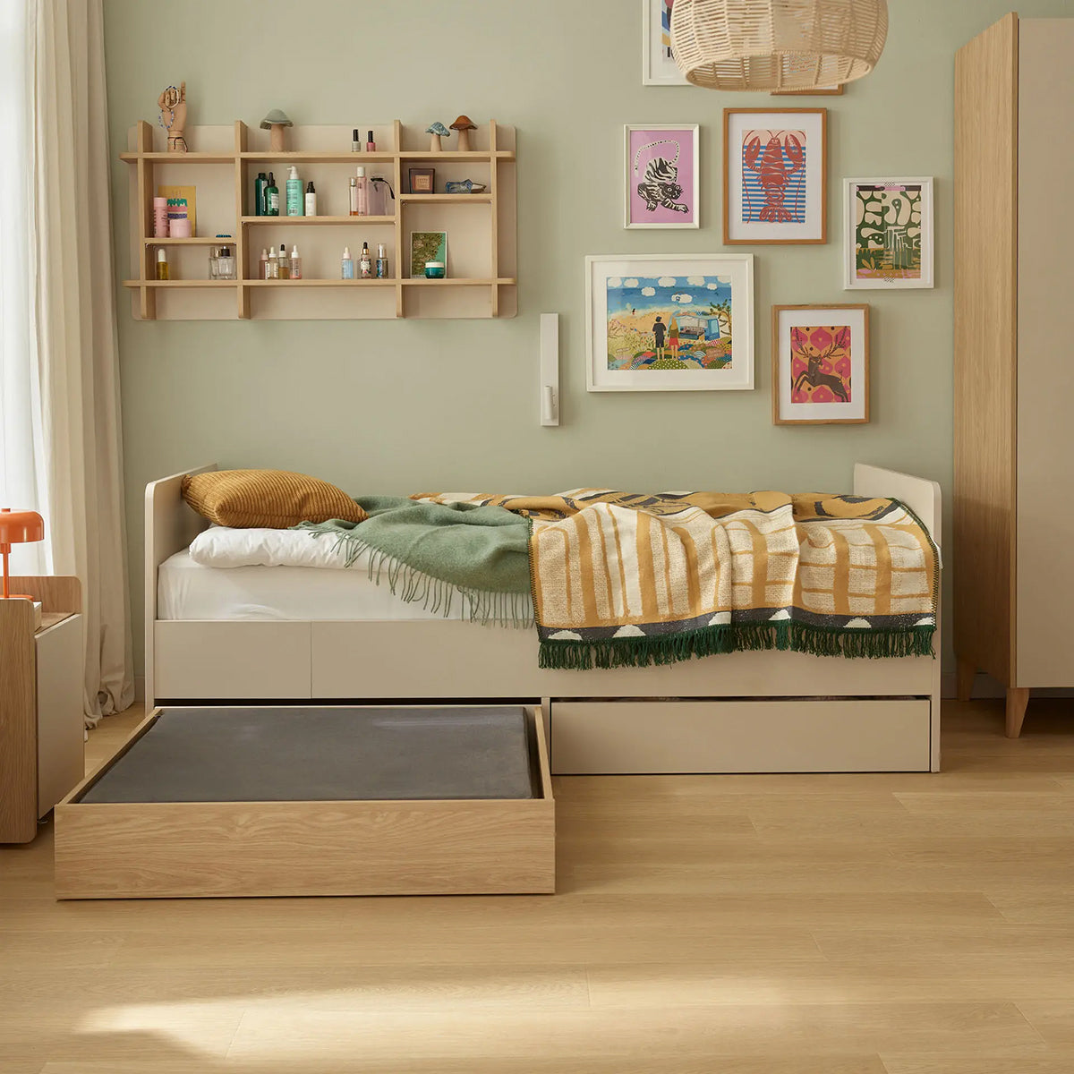 Разтегателното легло Muve е проектирано да се адаптира към нуждите на малкия потребител в различни етапи от развитието му. То съчетава функционалност, комфорт и възможност за персонализация – умно решение за всяка детска или младежка стая.