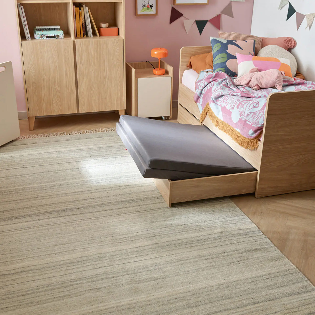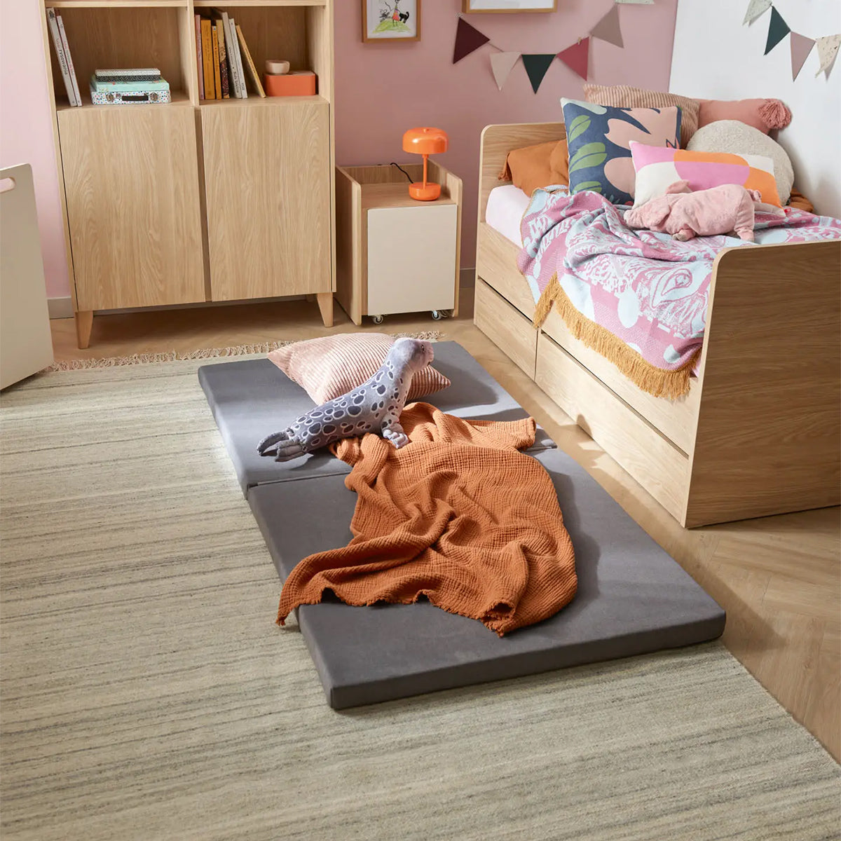 Разтегателният матрак е практично решение за малки пространства. Състои се от два свързани сегмента, които лесно се разгъват и предлагат комфортна повърхност за спане. Когато не се използва, матракът се сгъва в компактна форма и се прибира в чекмеджето под леглото или дивана.