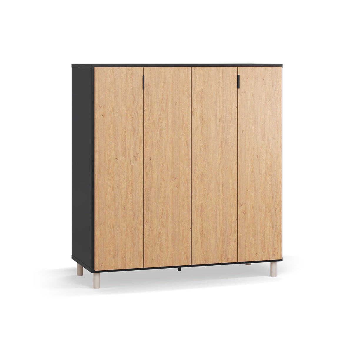 Може да избирате от четирите елегантни цвята: дъб, бял, пясъчно бежов или черен. Вашият шкаф ще се впише перфектно във всяко пространство, добавяйки стил и хармония.