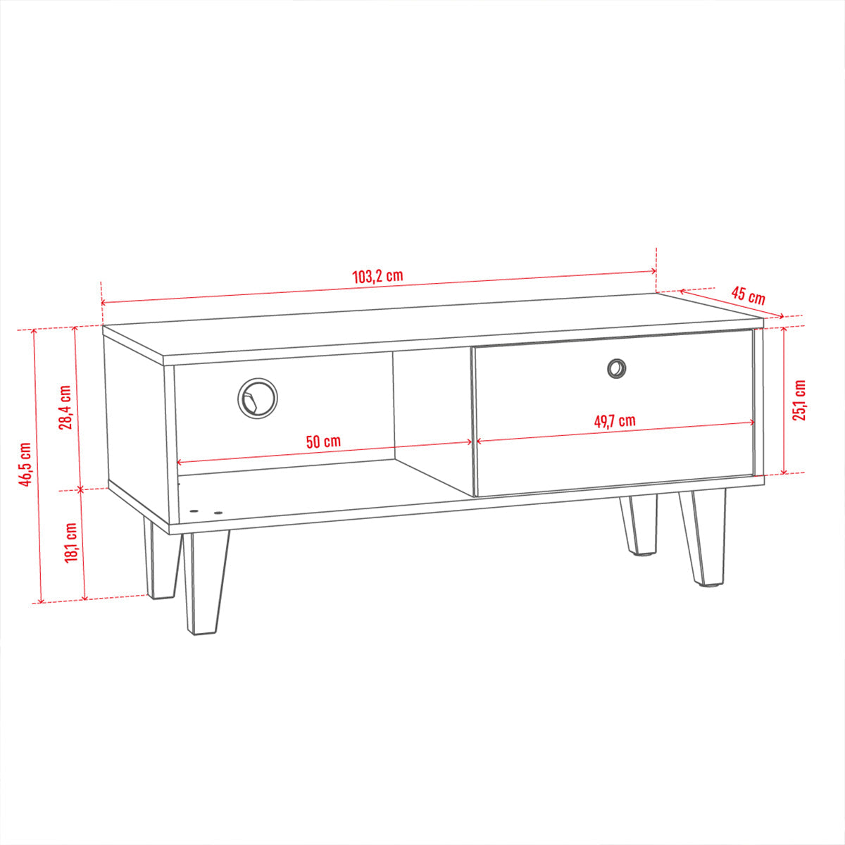 - ТВ шкафът е изработен от ламинирана плоскост, устойчива на замърсяване и надраскване.