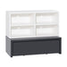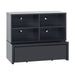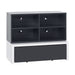 - Шкафът съдържа 4 отделения с еднакъв размер. Всяко от тях има кабелен проход, който Ви позволява свободно да подреждате устройства, които изискват достъп до електричество;