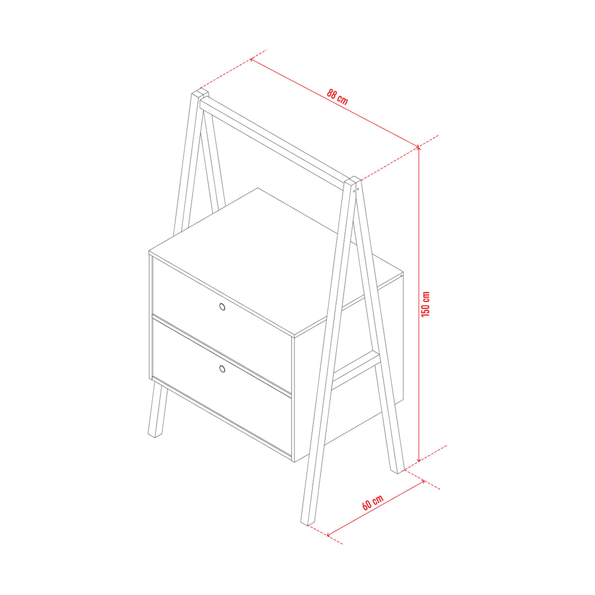 Скрин Spot с 2 чекмеджета и функционален парапет. Може да се използва за организиране на различни видове вещи в трапезарията, спалнята, офиса или детската стая.