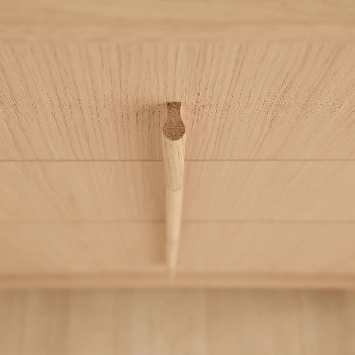 - Скринът е с дълга дръжка, която минава през челата на всички чекмеджета и осигурява удобен достъп до вътрешността им;