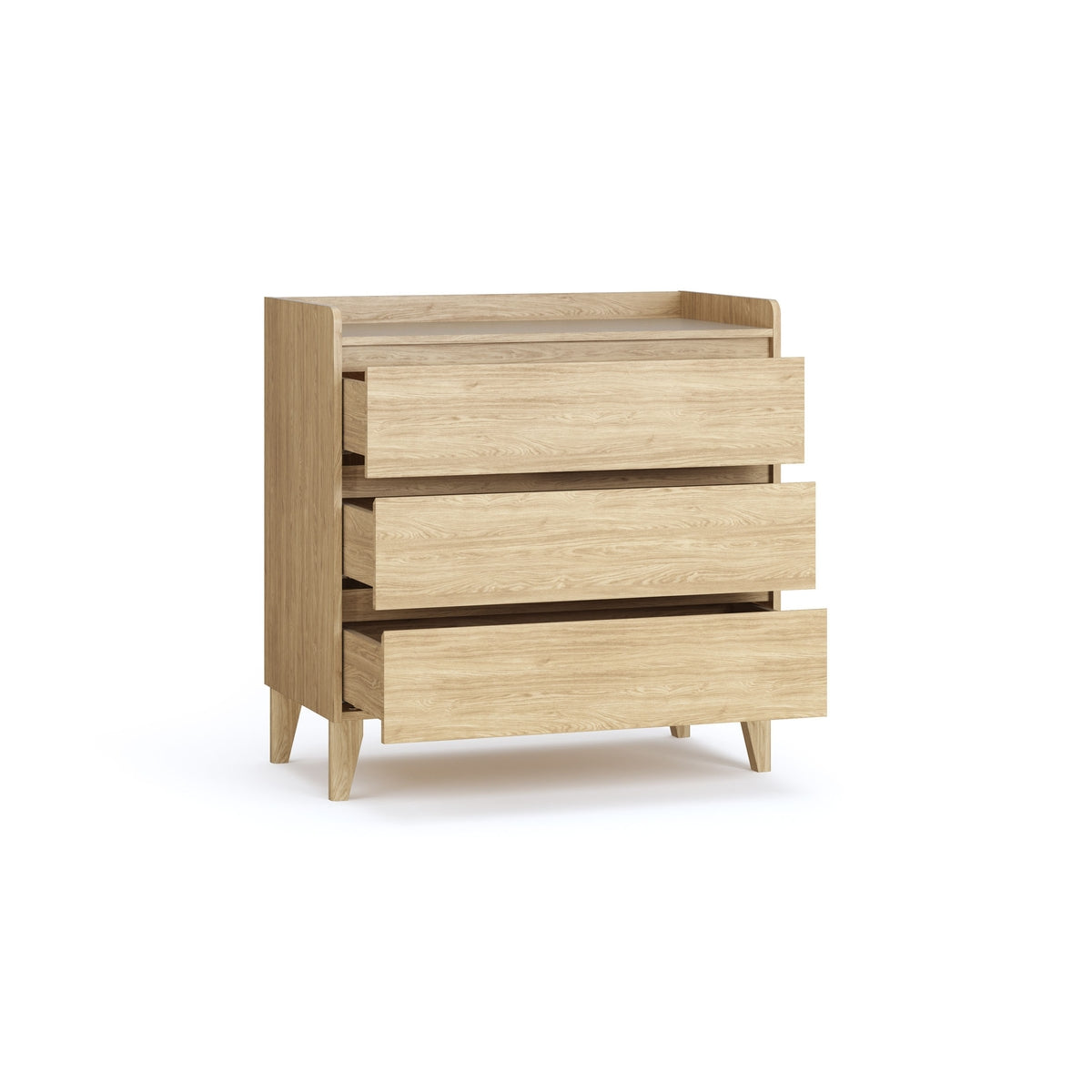 Скринът от колекцията Muve е практична и безопасна мебел, проектирана с мисъл за стаите на малките деца. Просторните му чекмеджета лесно побират дрехи, памперси и всички необходими аксесоари, улеснявайки организацията и ежедневните грижи за децата.