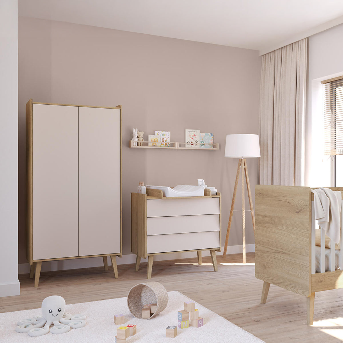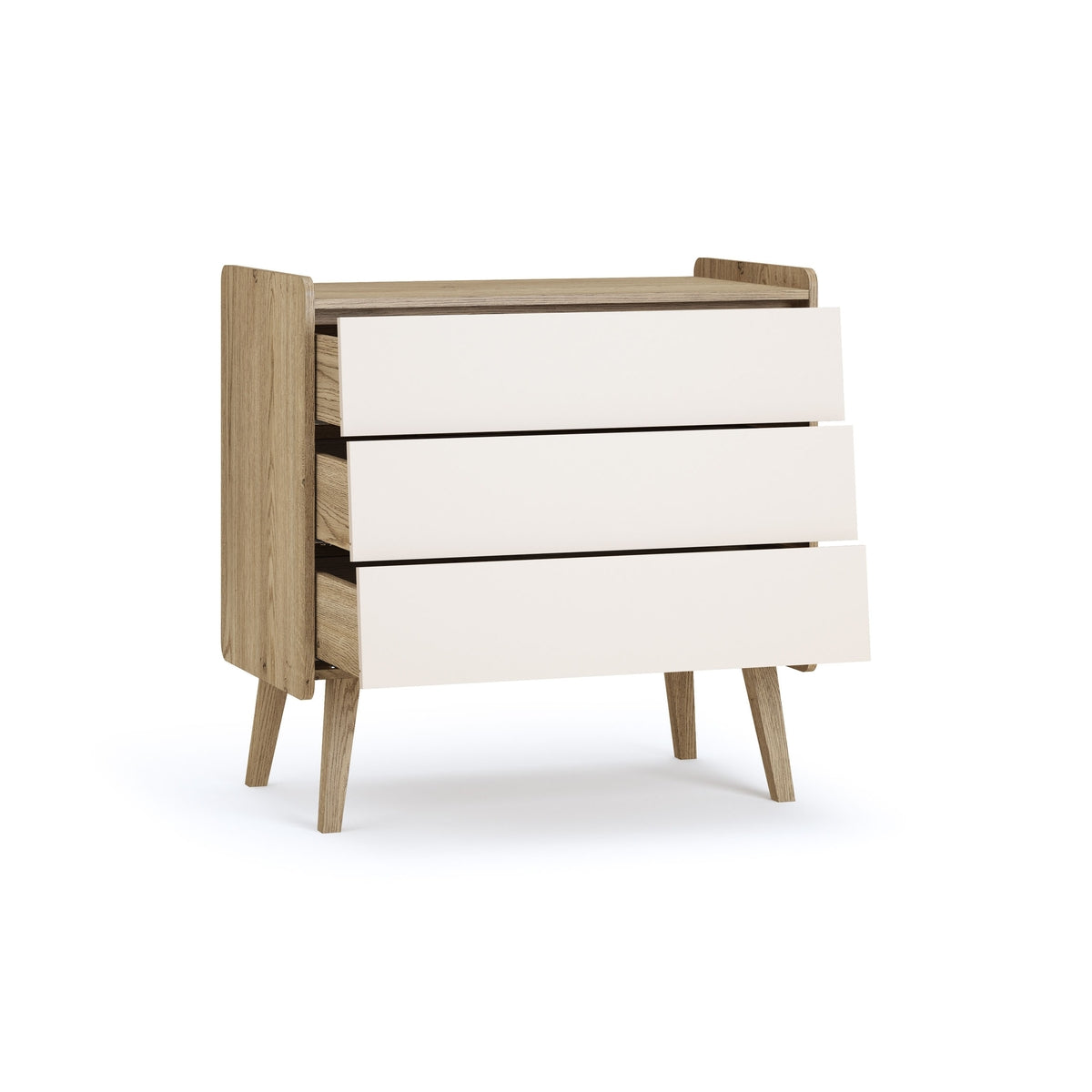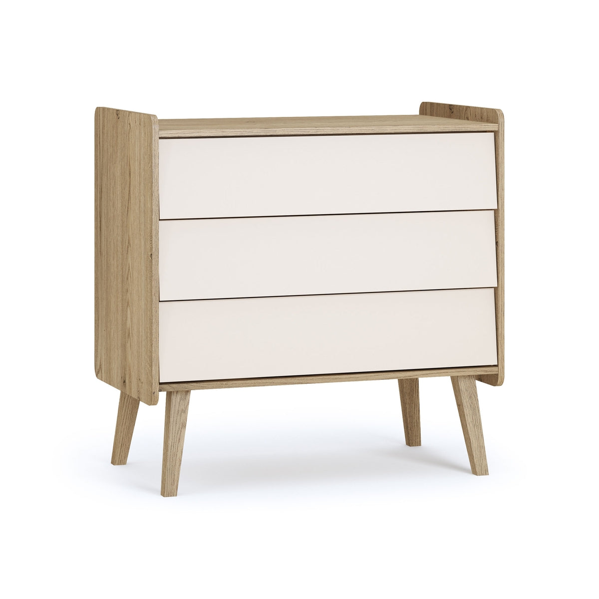 Този скрин от колекцията Vintage Fresh съчетава функционалност и естетика. Топлият нюанс на дъба, комбиниран с бежови фронтове, създава хармонична комбинация, която внася уютно усещане във всяка стая. Три просторни чекмеджета и възможността за добавяне на повивалник го правят идеален избор за детска стая.