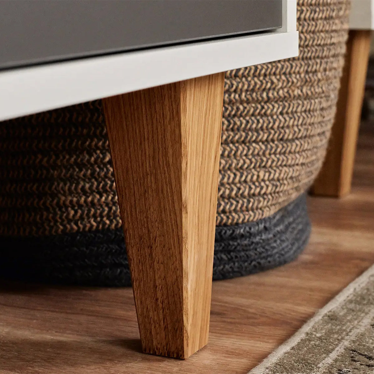 - Краката на скрина са от естествен дъб и са високи 18 см, което е отлично разстояние за преминаването на прахосмукачка робот.
